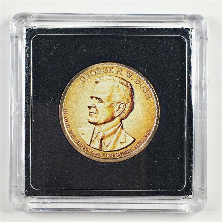 Colorized George H. W. Bush Commemorative Presidential Dollar*In Protective Holder