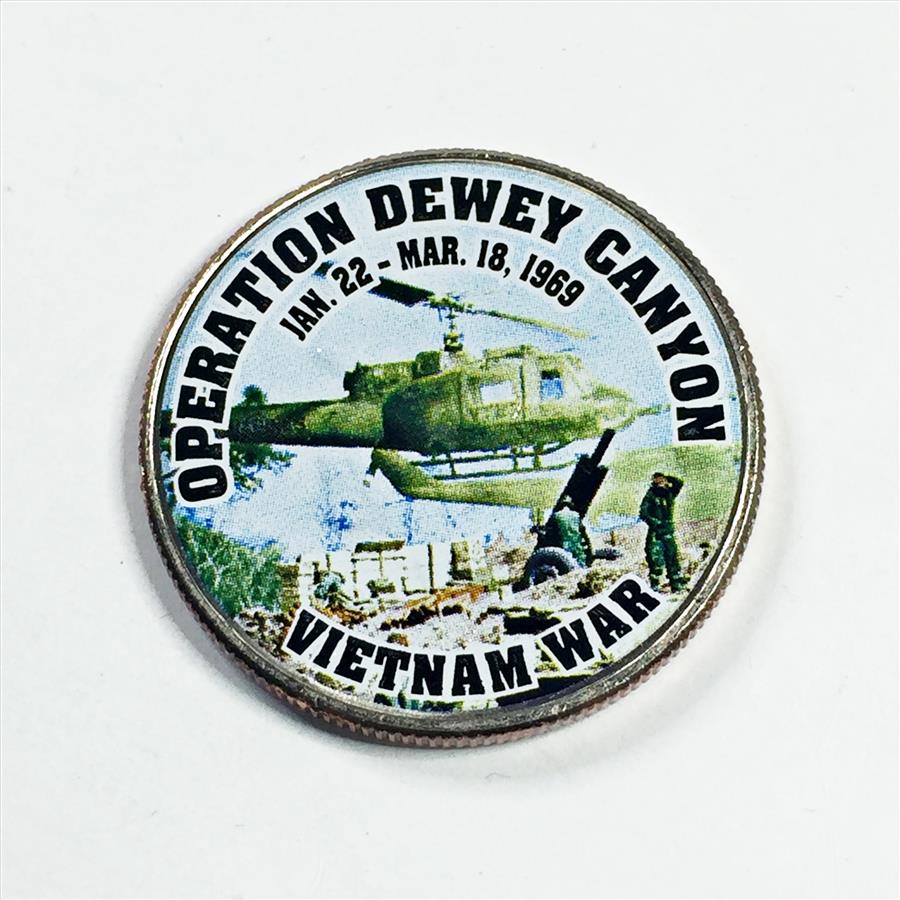 Colorized Kennedy Half Dollar Commemorating Operation Dewey Canyon; Vietnam War