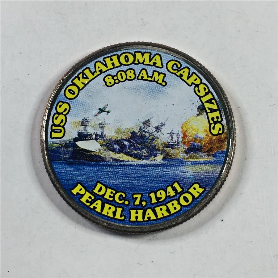 Colorized Kennedy Half Dollar Commemorating the USS Oklahoma Capsizing 8:08AM at Pearl Harbor on Dec 7, 1941
