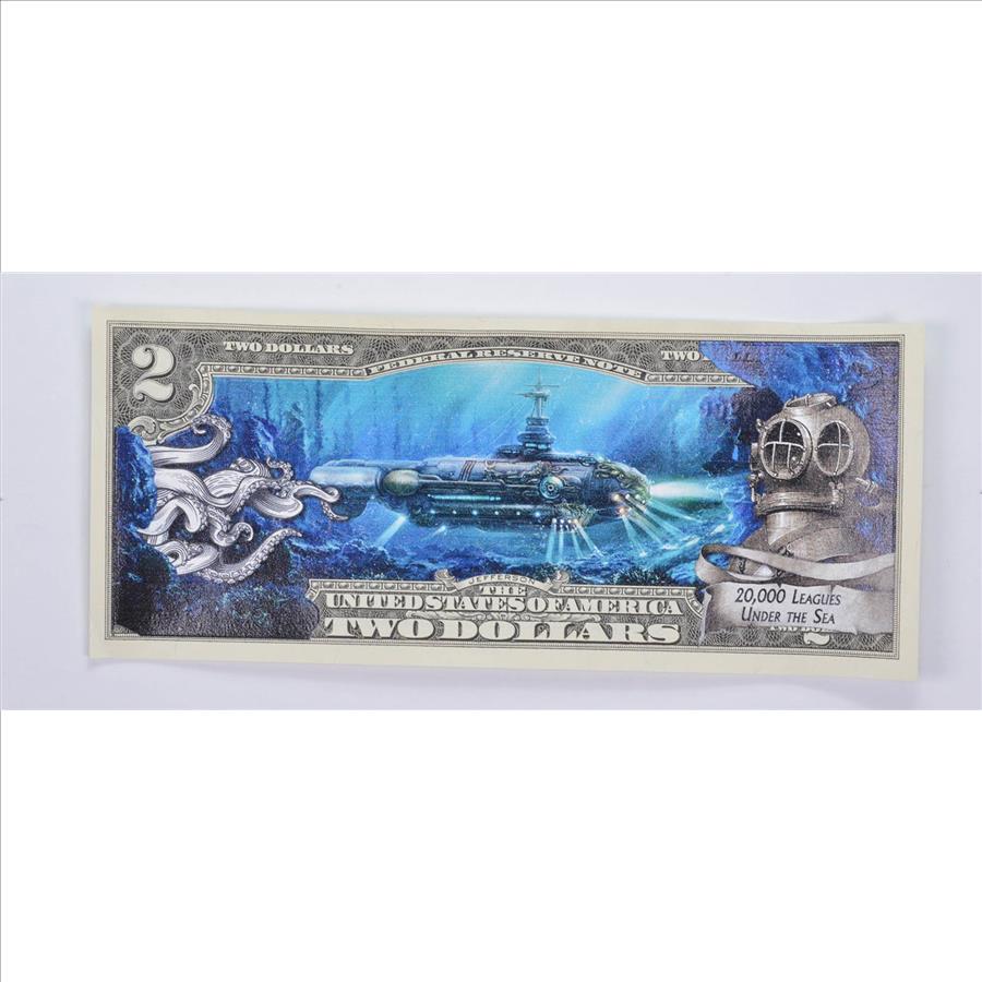 Colorized Unique Art 2003 $2 Note 20,000 Leagues Under The Sea