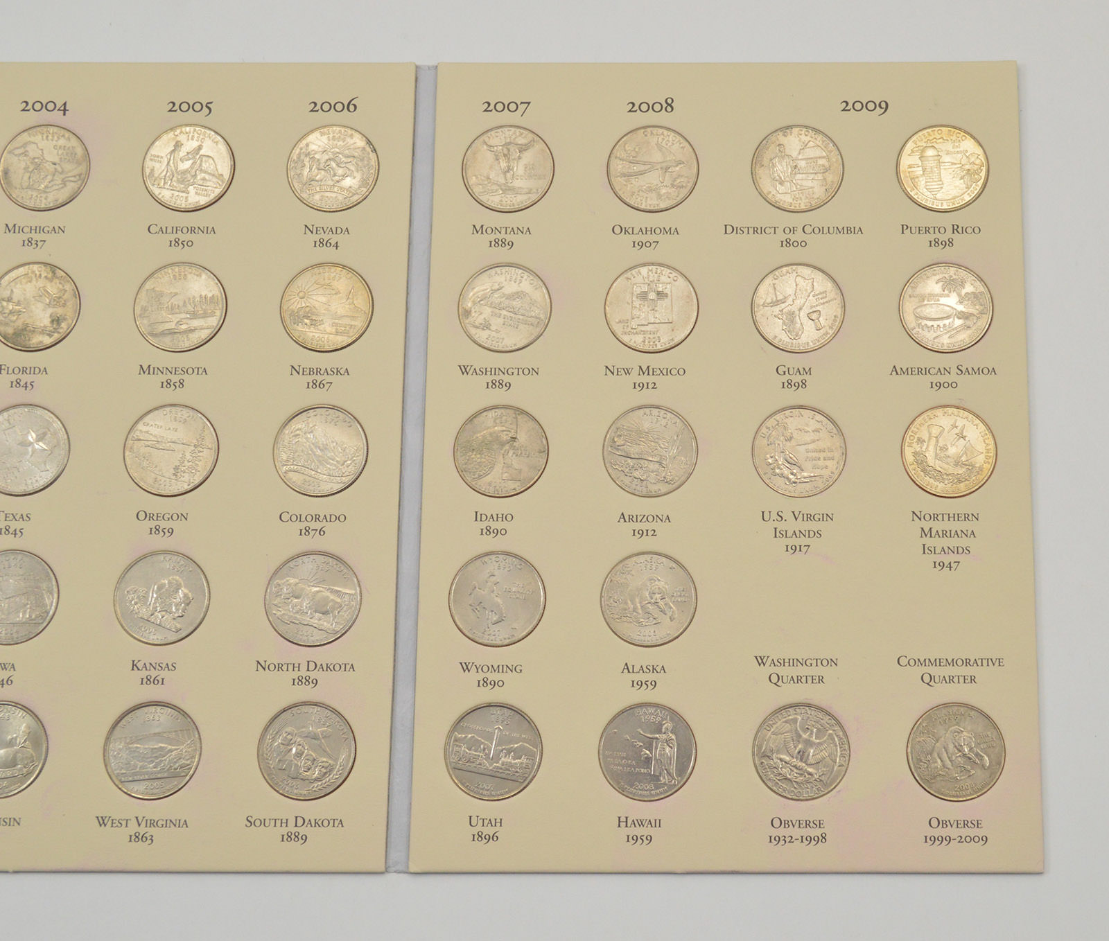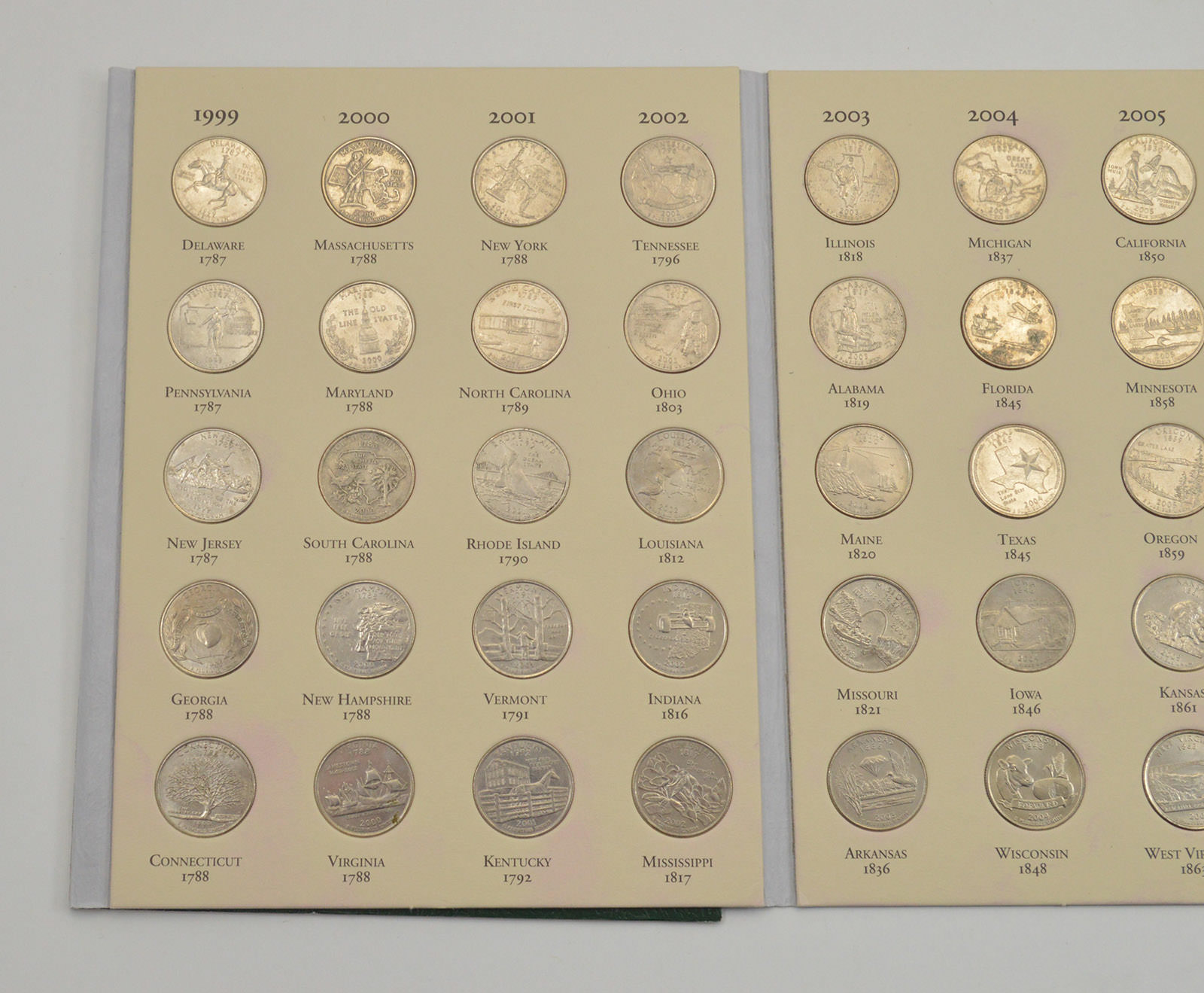 Complete 1999-2008 State Quarter US Coin Collection - Nice Album - 50 Coins!
