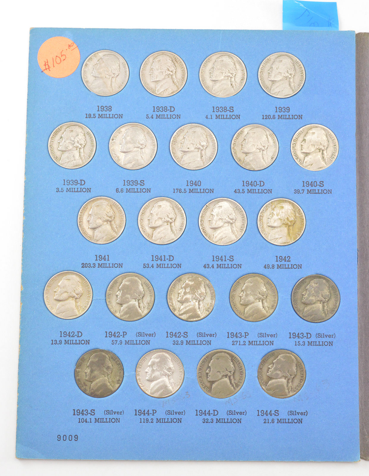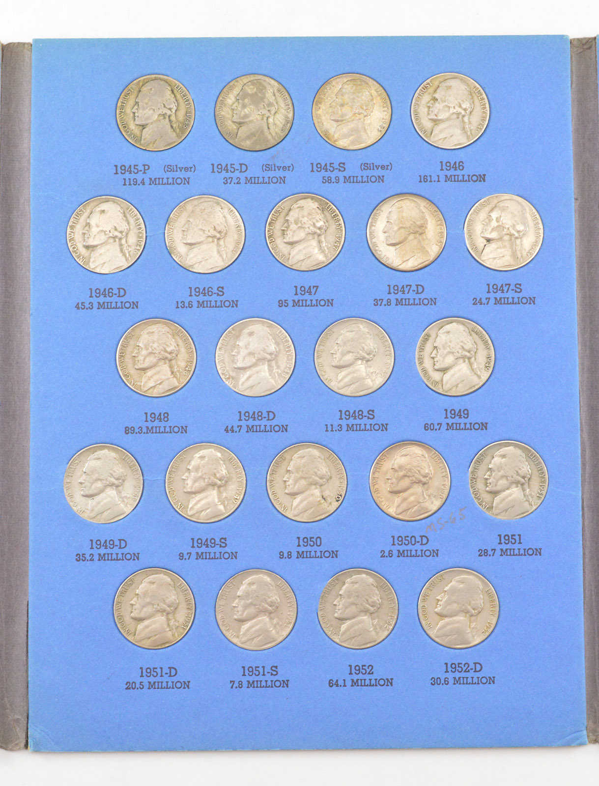 COMPLETE SET - 1938-61 Jefferson Nickels Collection SILVER War 1950-D