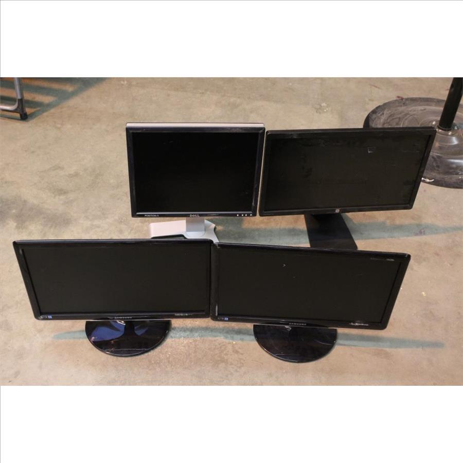 Computer Monitor Lot, 4 Count Pieces And HP Printer