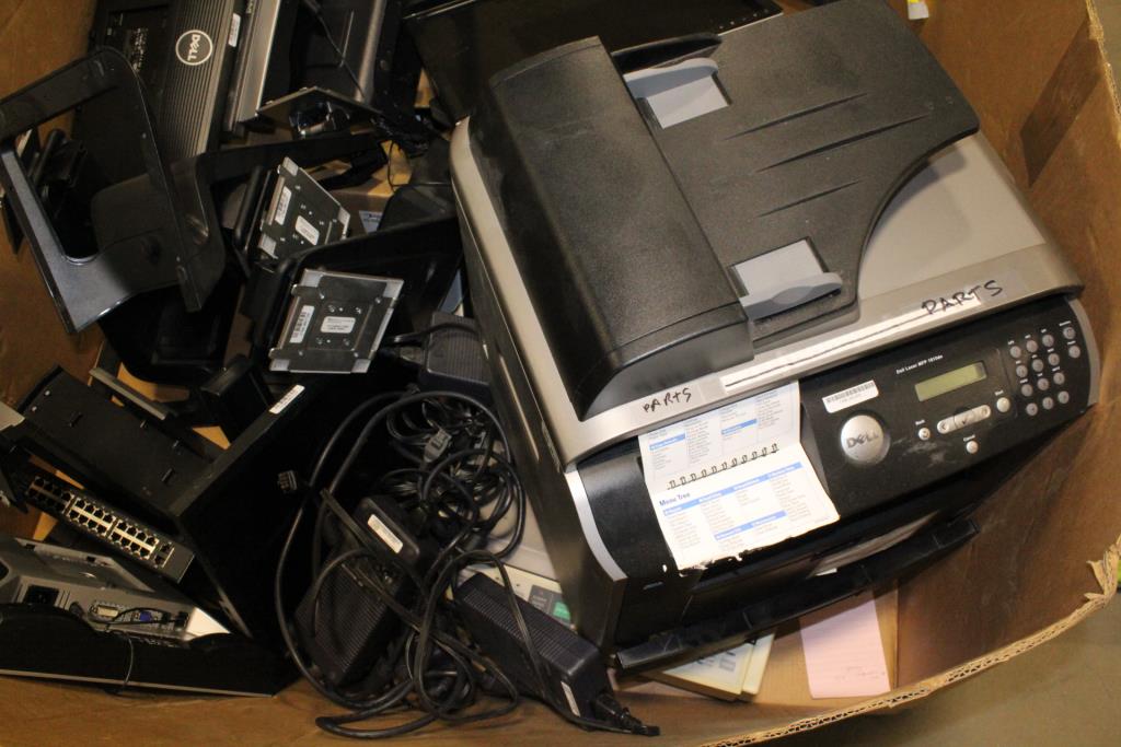 Get a great deal with this online auction for computer accessories presented by Property Room on behalf of a law enforcement or public agency client. Printers, including: Dell Multi-function printer, 1815dn, Panasonic KX-P3196 Monitors, including: Dell 1503FP, 1708FPb, 1913b and more And More Power cables and other accessories are not included. Cosmetic Condition: good, some scratches, scuffs and wear Testing Results: These items have not been tested due to lack of equipment. Condition: Untested - Sold as-is This item is untested and may require repair. Item is sold "As Is" and is not returnable.