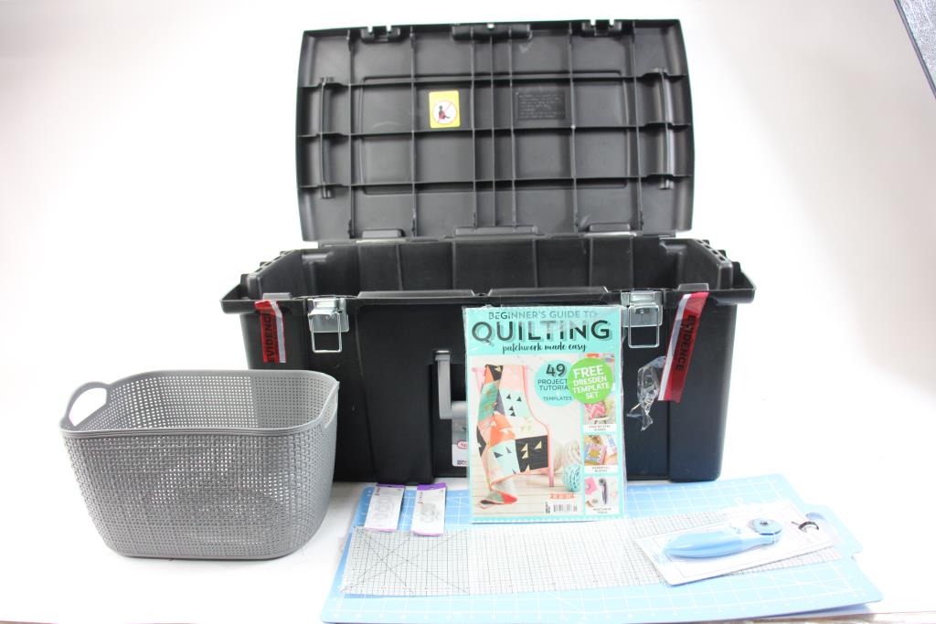 Container Filled With Rotary Cutting Equitment And Novelty Prints, 5+ Pieces