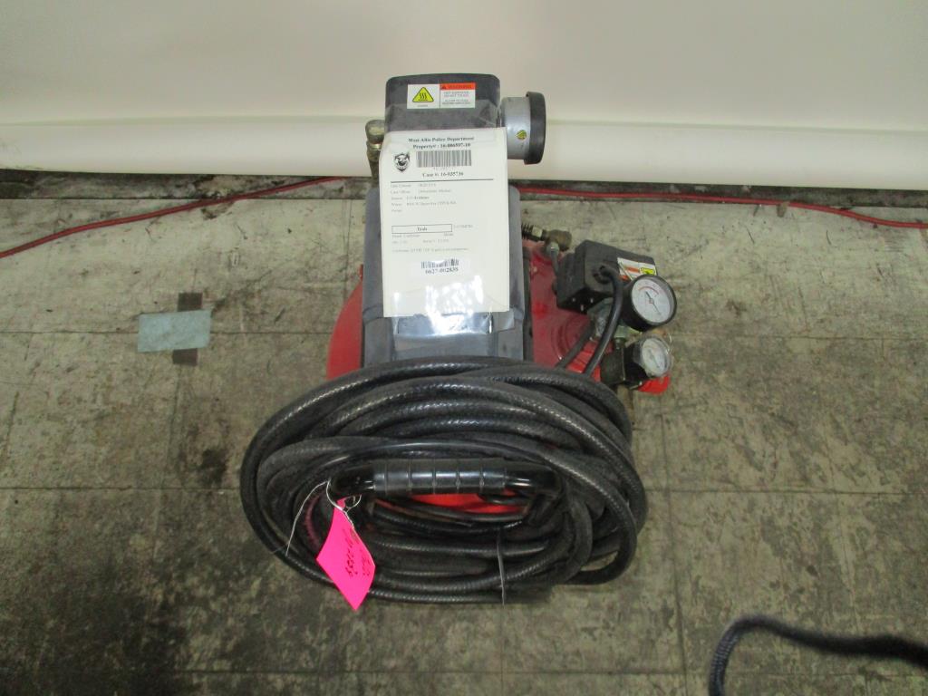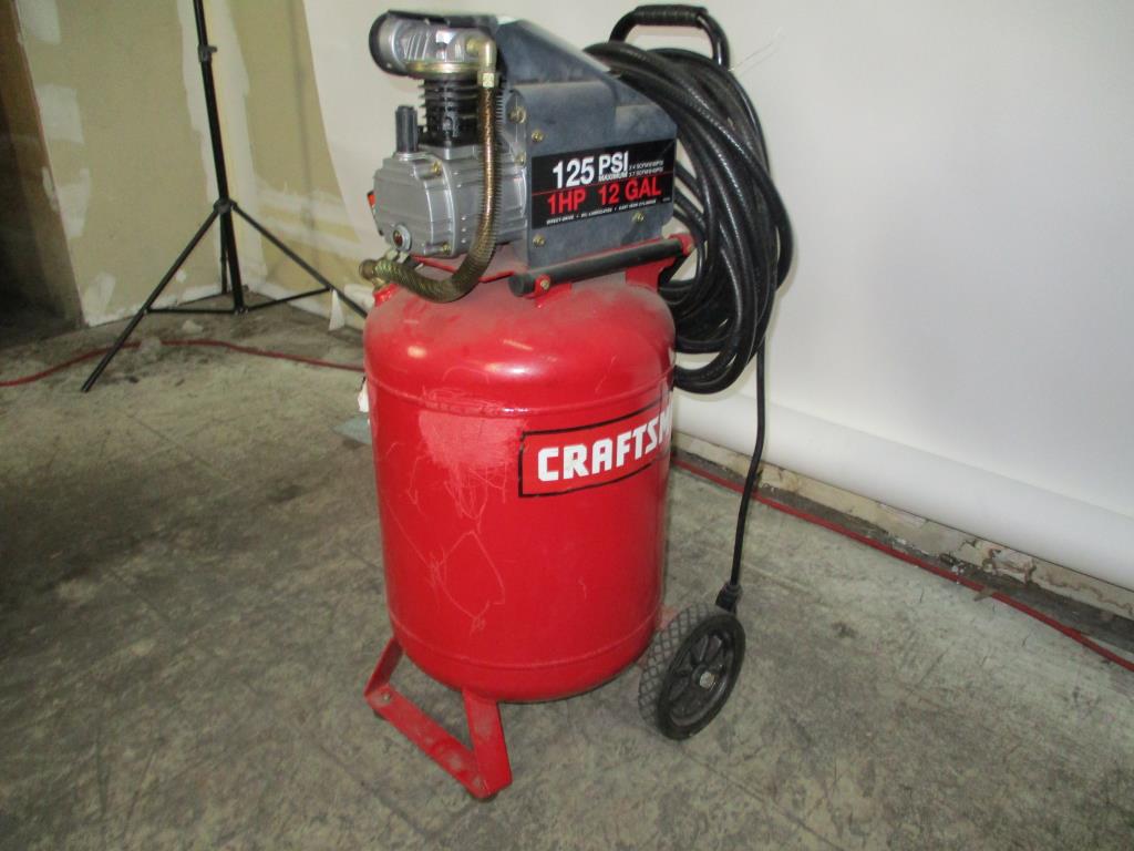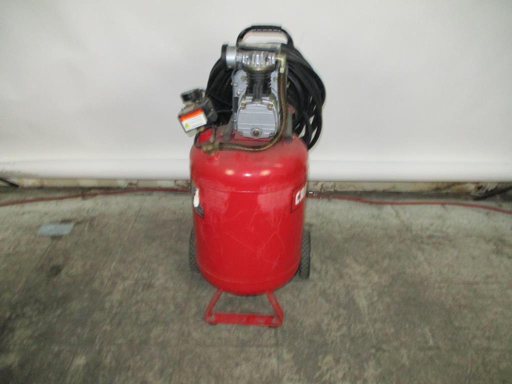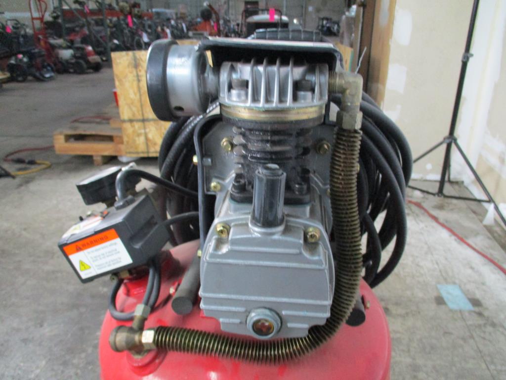 - handle with dual wheels, 12 gal tank, dual gauges, hose attach, 125 psi max, air adjustable knob