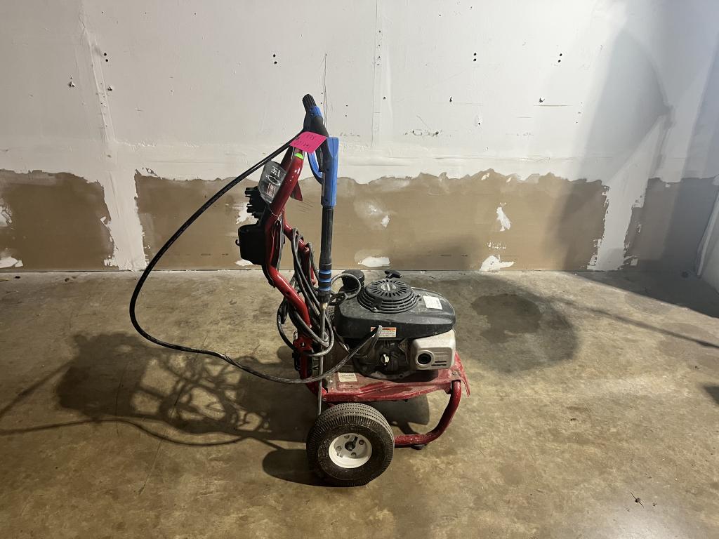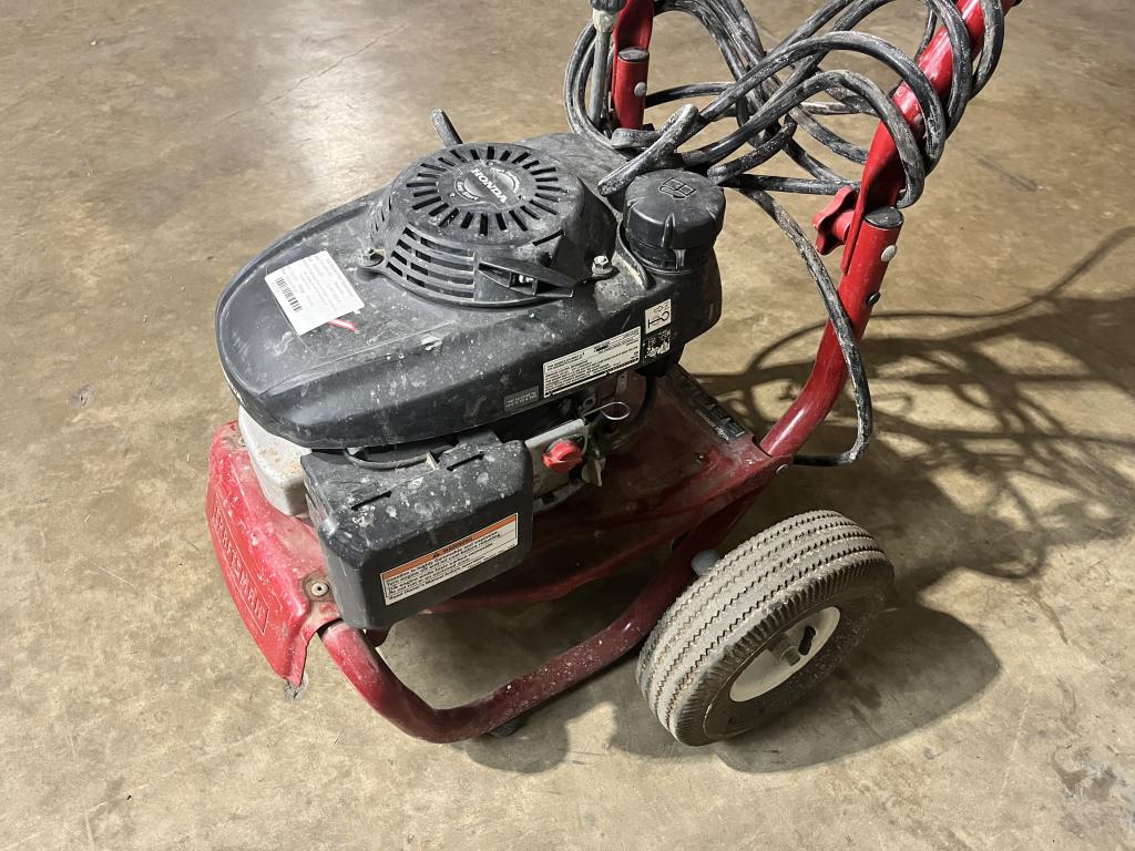 - Item info: Honda 160cc engine, up to 2600 PSI, 2.3 flow rate, 25 foot hose - red and black in color