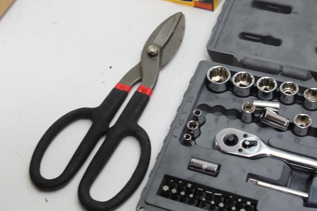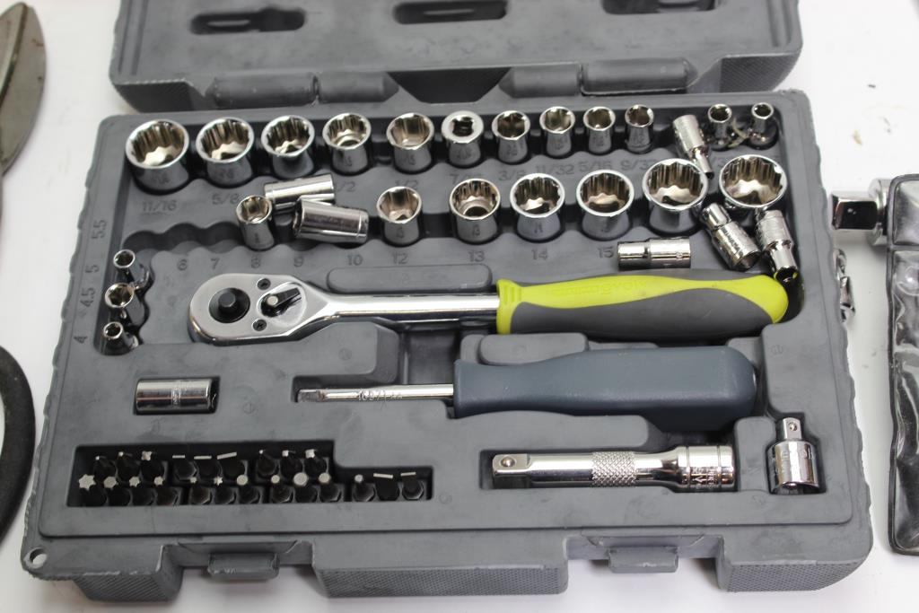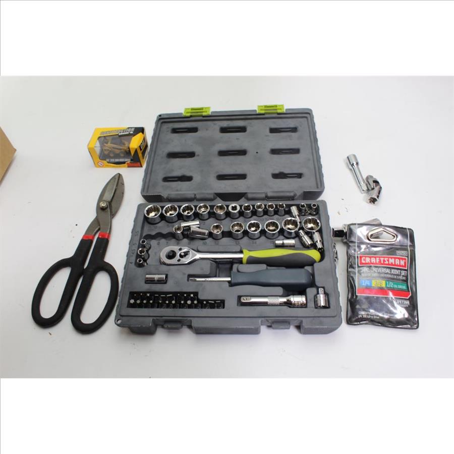 - Tools: sockets, cutters, joint set, toy car