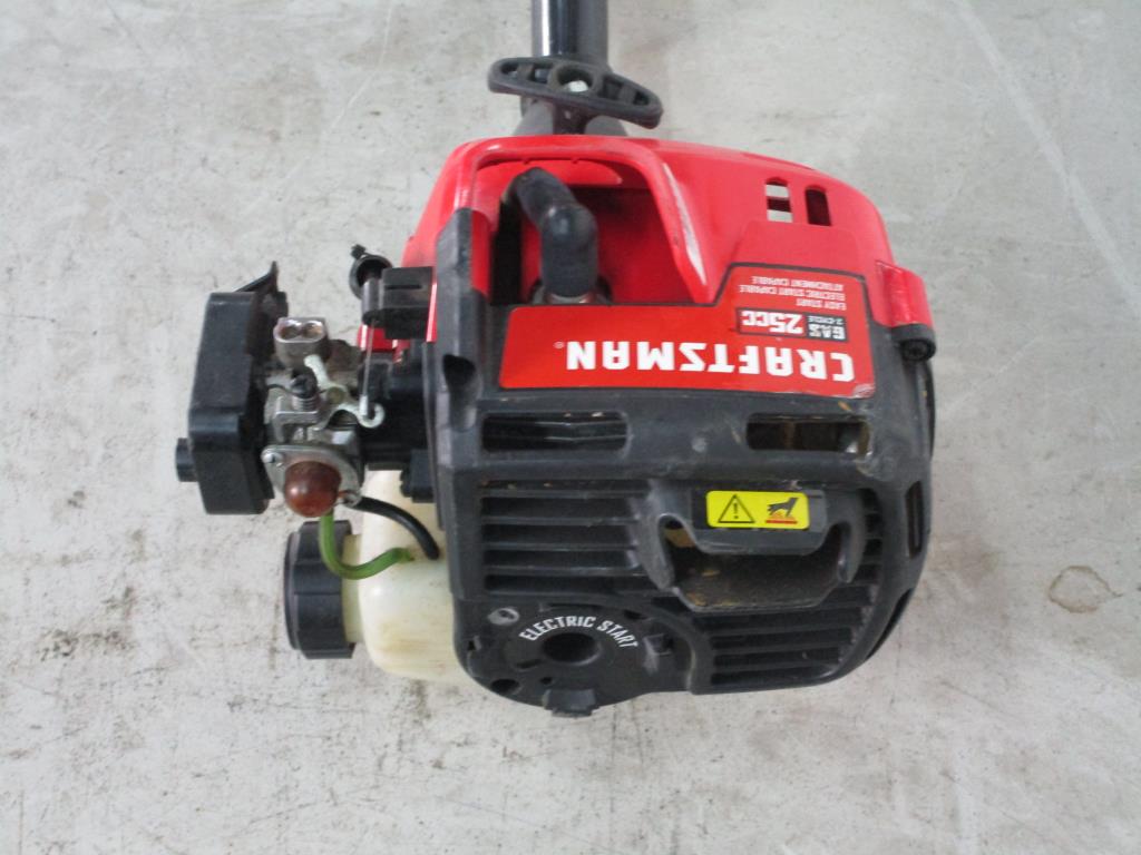 Get a great deal with this online auction presented by PropertyRoom.com on behalf of a law enforcement or public agency client. Brand:Craftsman Model: Unknown Color: Red and Black Gas powered, pull cord start, 25cc 2 cycle engine, adjustable straight bar, kill switch, line guard, trigger /throttle on handle, handle for stability. - Measurements: 71"