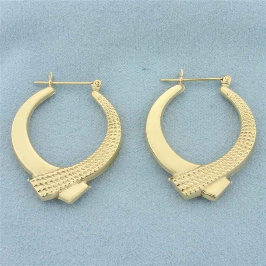 Crossover Ribbon Design Hoop Earrings in 14k Yellow Gold