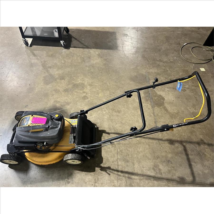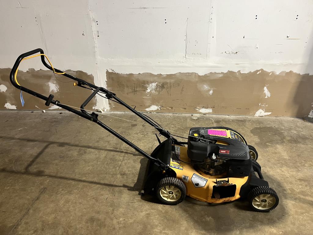 - Item info: yellow, six inch cutting height, 21 inch steel deck, kohler engine, pull cord start, gas powered
