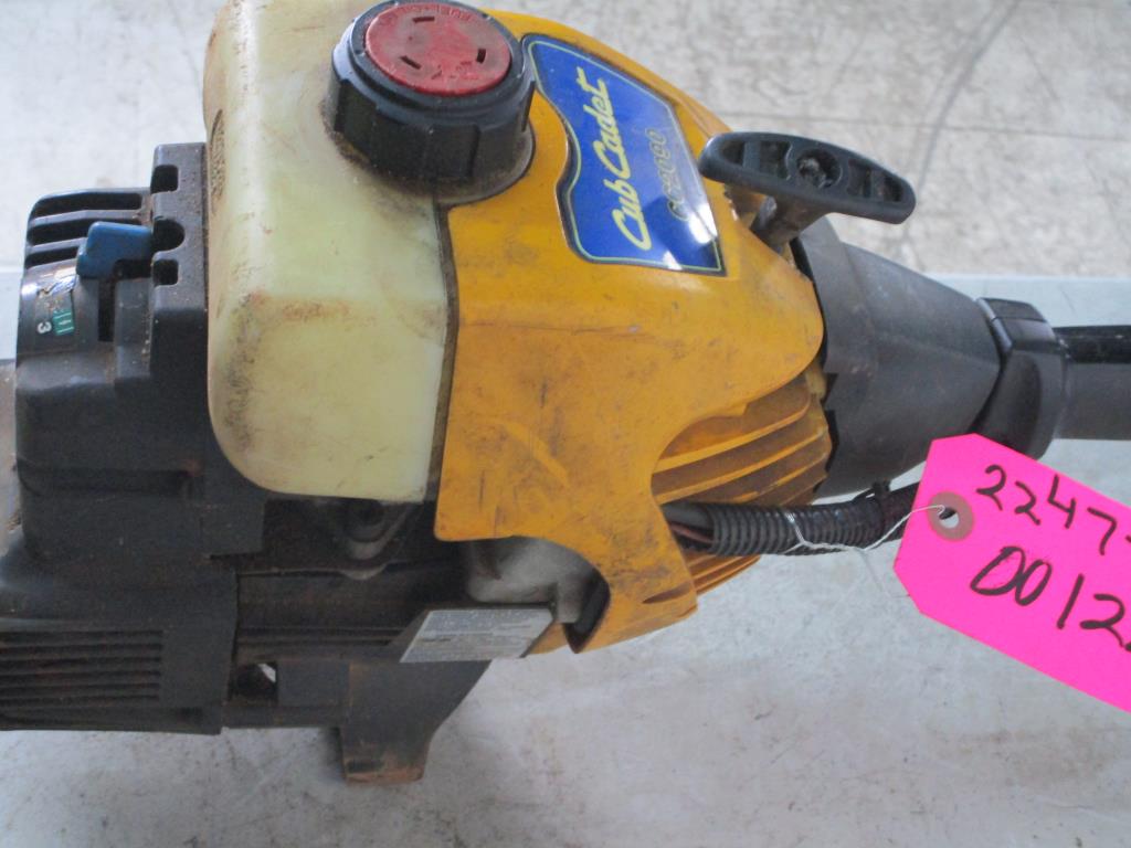 Get a great deal with this online auction presented by PropertyRoom.com on behalf of a law enforcement or public agency client. Brand: Cub Cadet Model: CC2090 Color: black and yellow Accessories: Gas powered , pull chord start, trigger throttle, kill switch, handle for stability, adjustable bar, straight bar, line gurad - Measurements: 70"