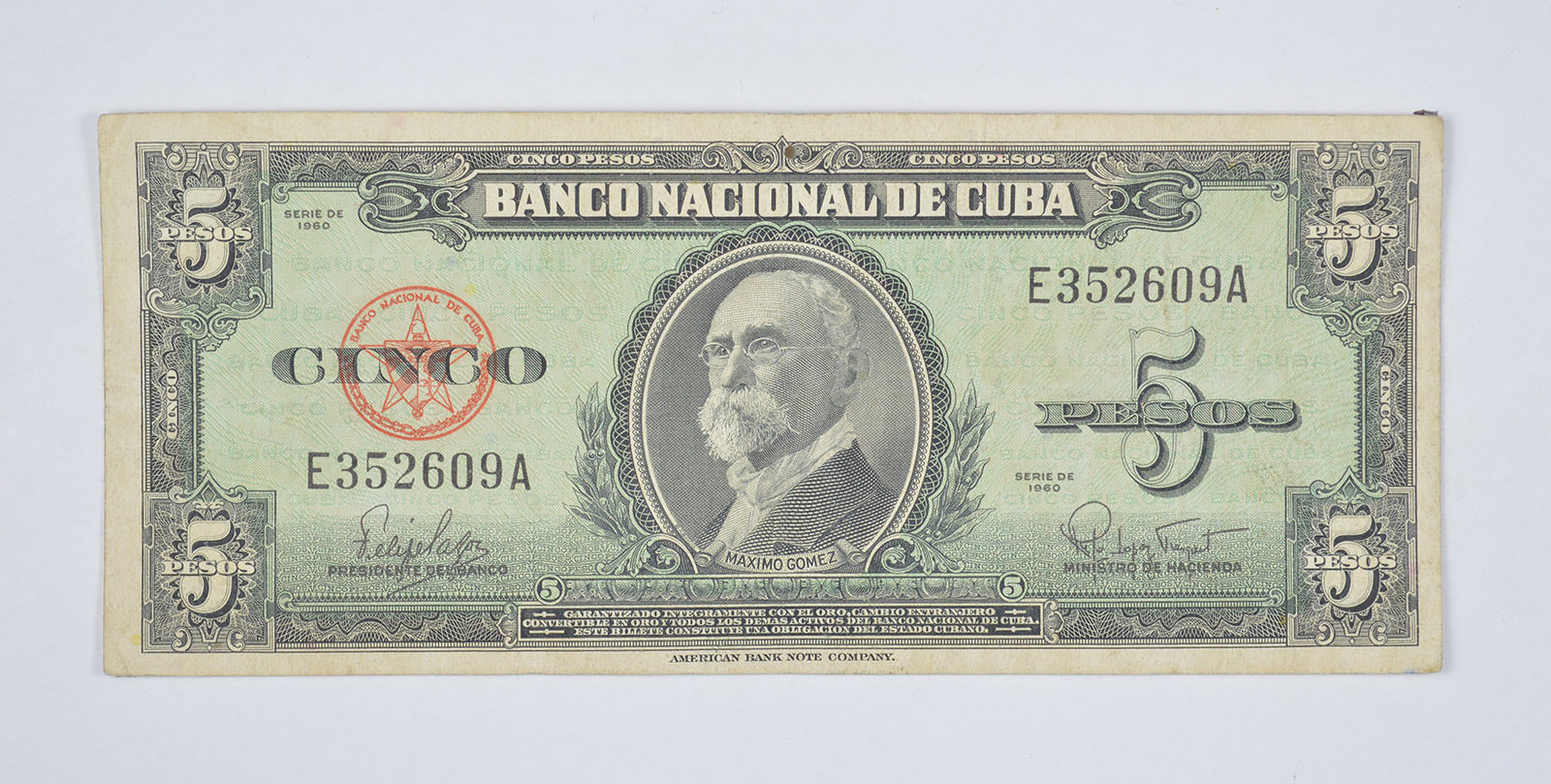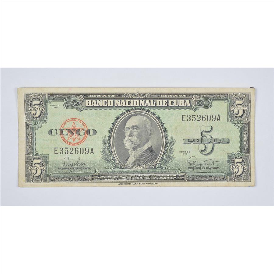 CUBA - National Bank of Cuba 5 Pesos Note - Maximo Gomez - Series of 1960!