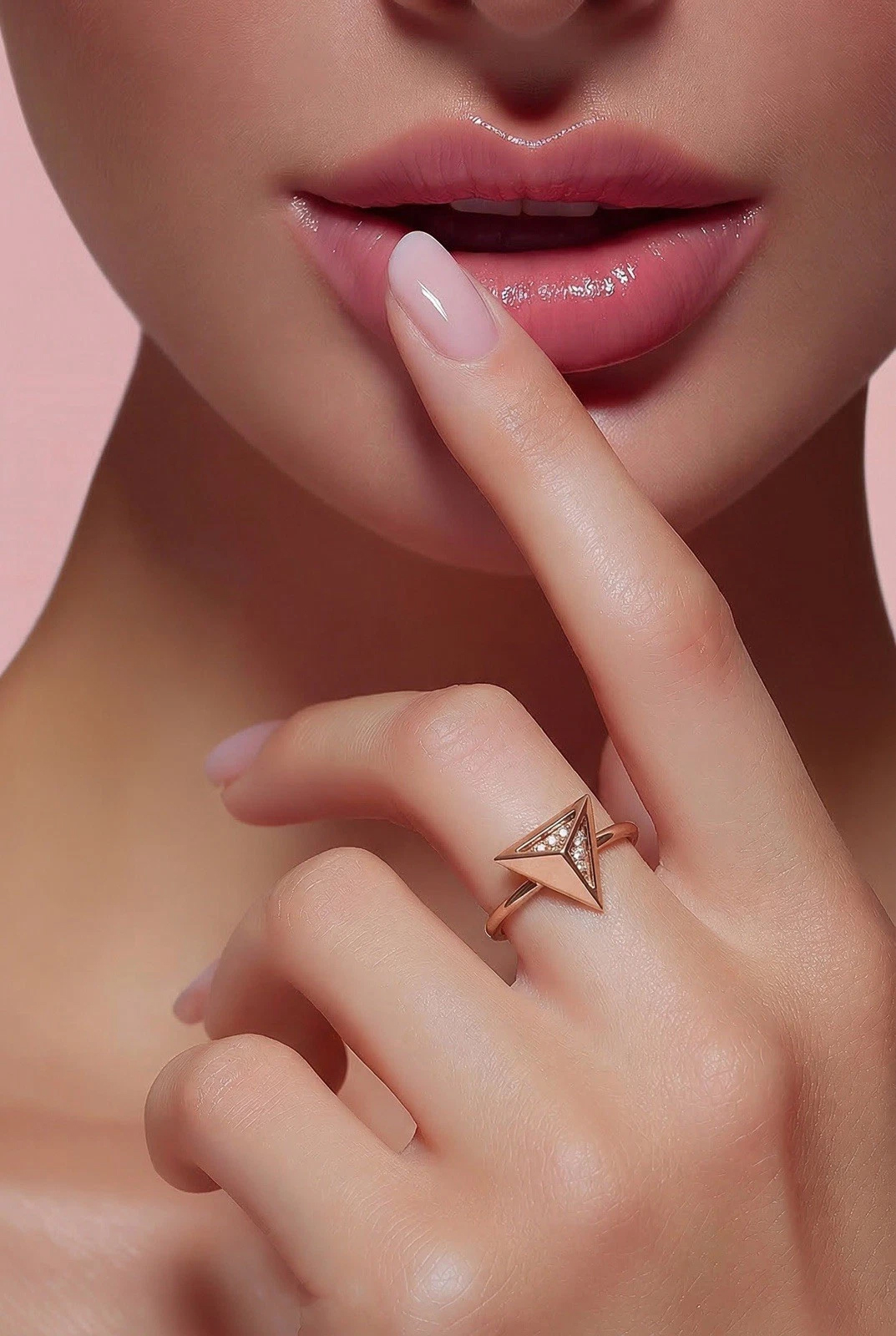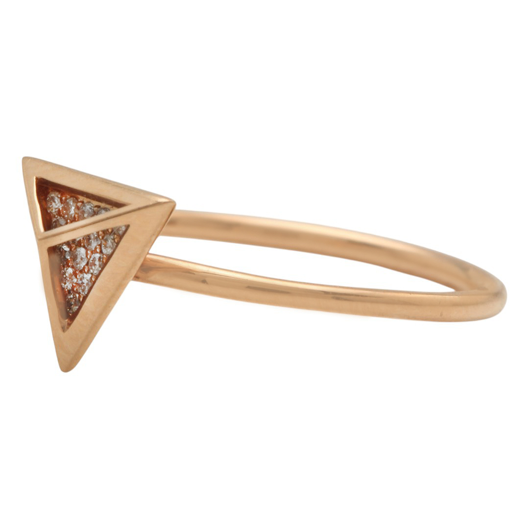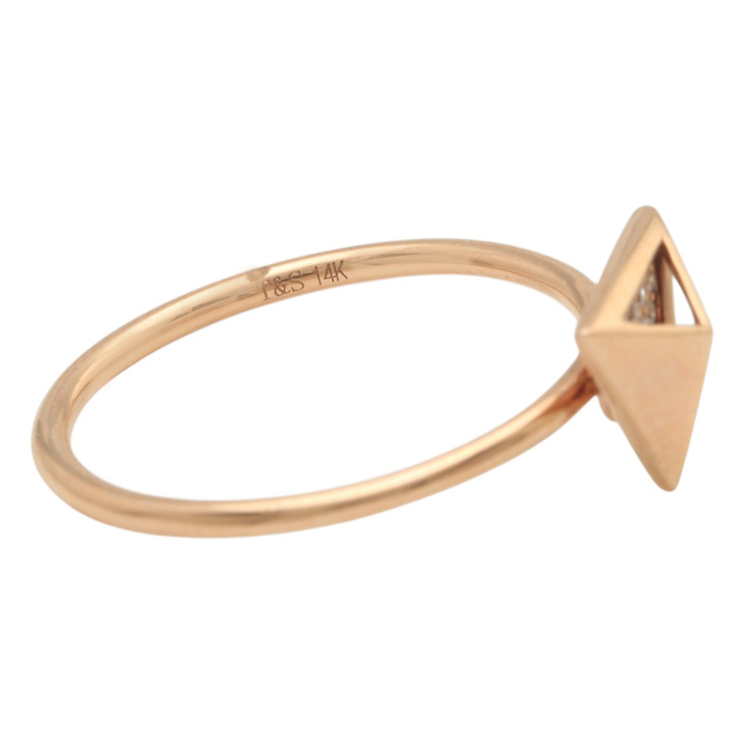Cute Natural Diamond 14K Solid Rose Gold Triangle Ring