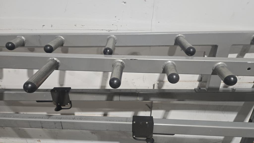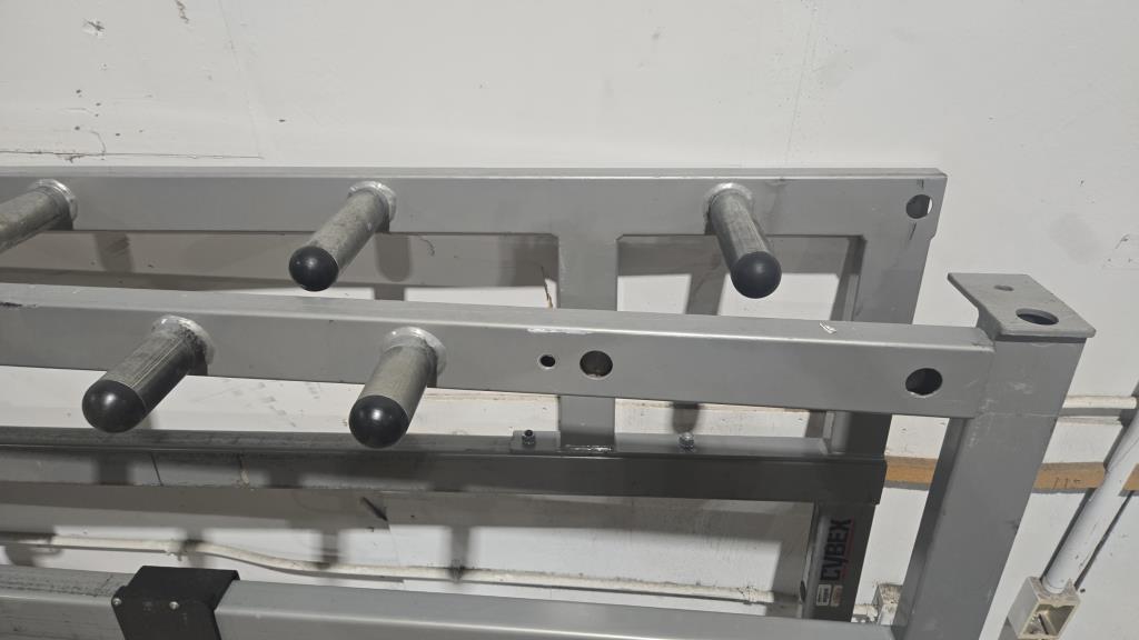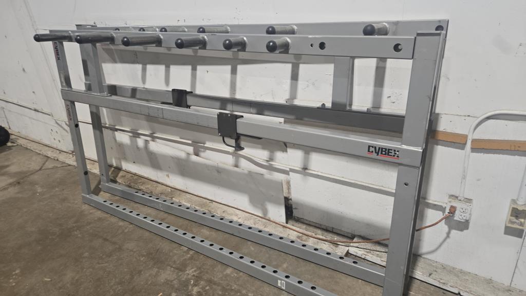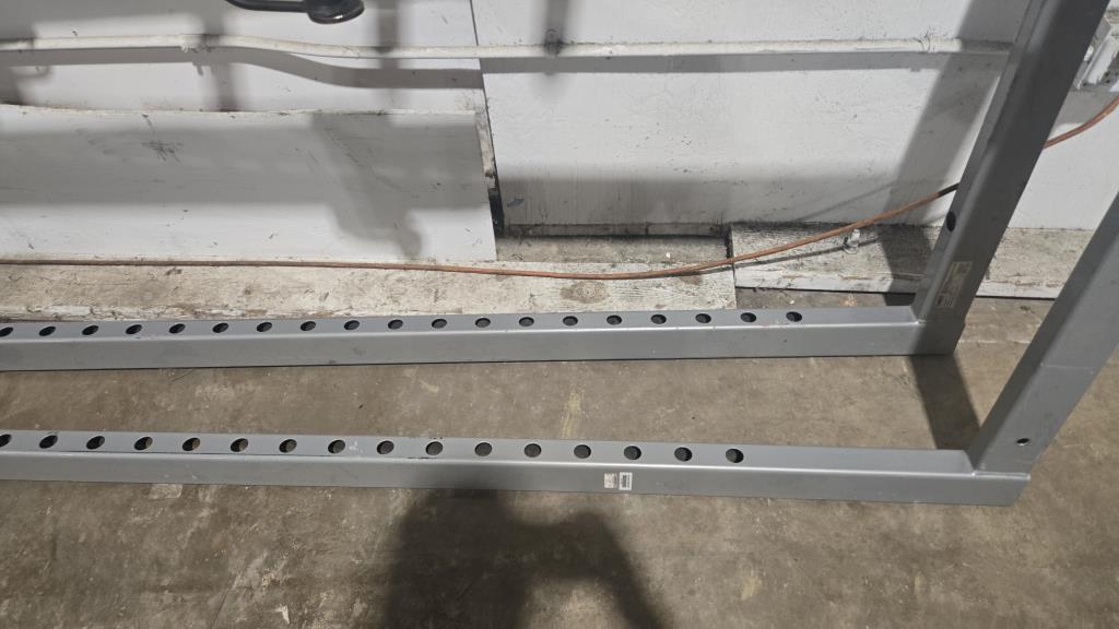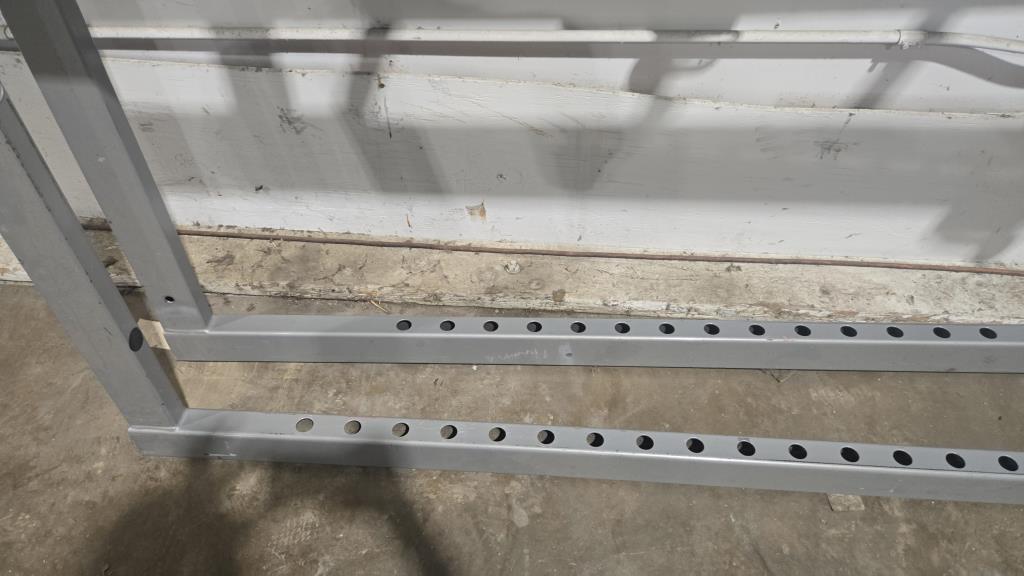 - Item info: Squat rack, dual level bar rests, 12 weight holders.