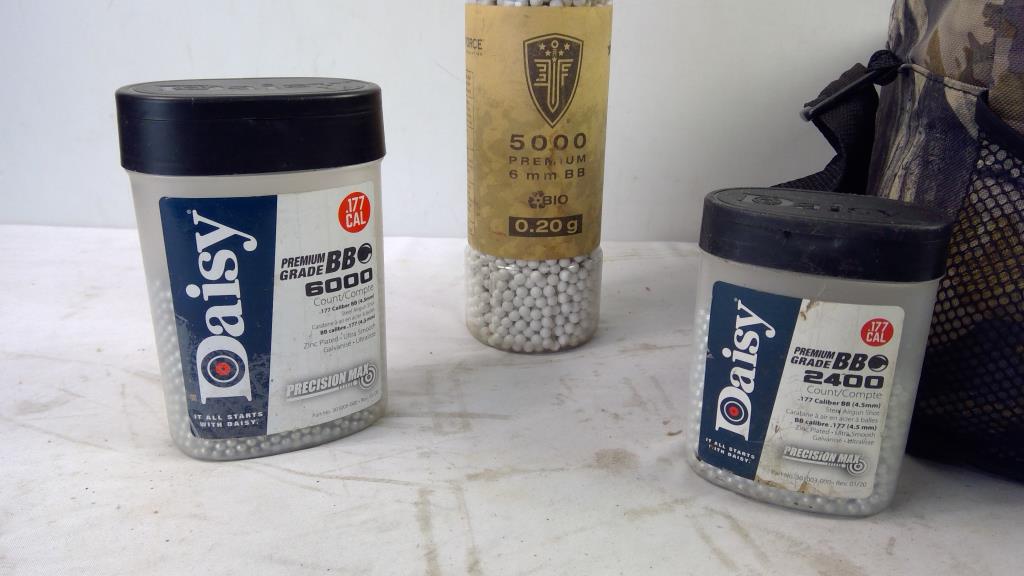 Daisy .177 BB Pellets, Elite Force 6mm BB Pellets, And Cabela's Camo Lunch Bag, 4 Pieces