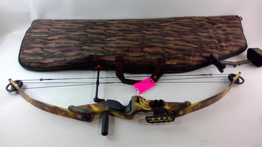Get a great deal with this online auction presented by PropertyRoom.com on behalf of a law enforcement or public agency client. Model: E90-85140 Color: Camo Bow Length: 44'' Draw Length: 55-70 Draw Weight: Unknown Draw: Right handed Accessories: Carrier Cosmetic Condition: Good Shipment by PropertyRoom to any jurisdiction does not mean this item is legal in such jurisdiction. It is your responsibility to have knowledge of, obey, or comply with all applicable laws relating to this item.