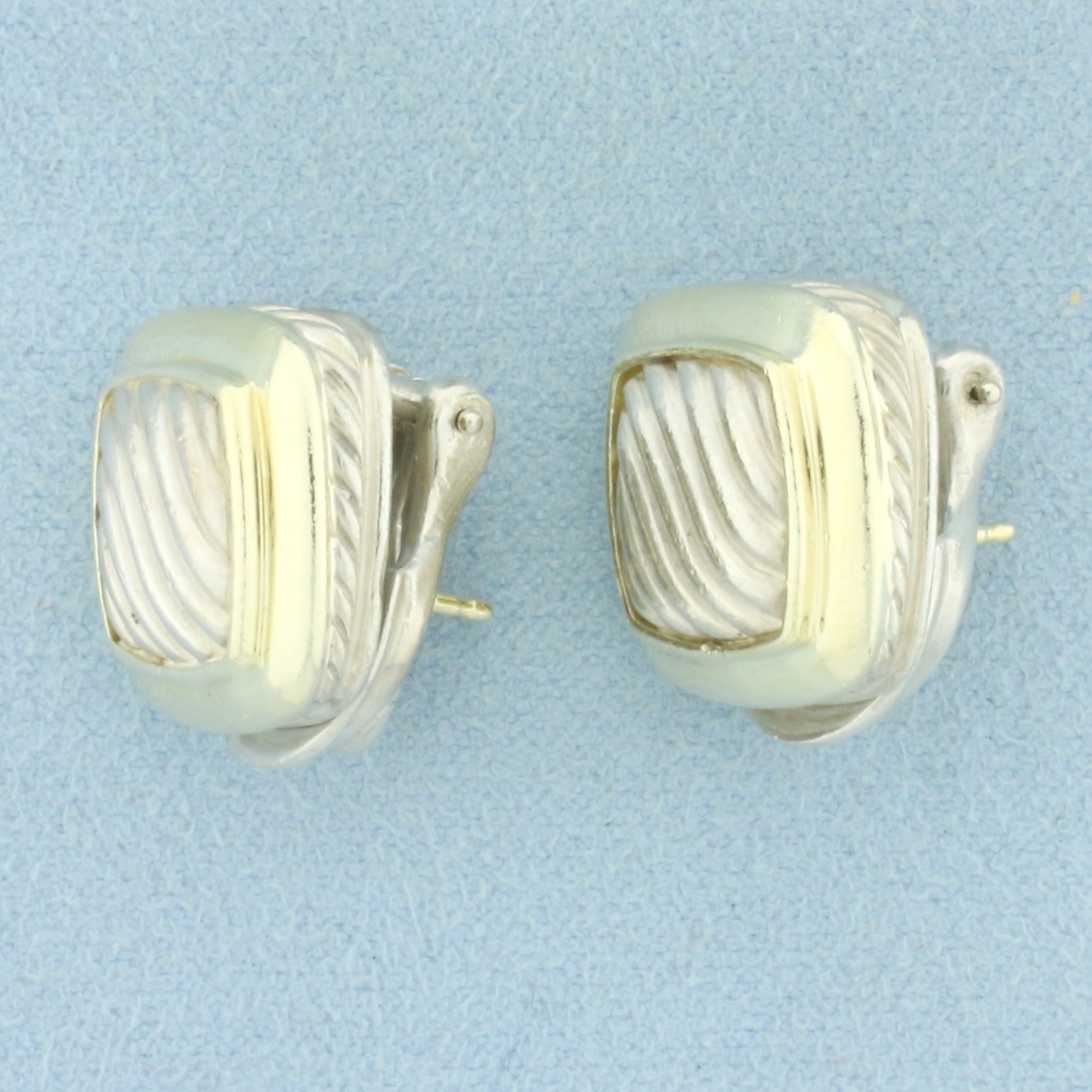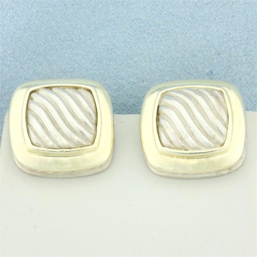 David Yurman Albion Cable Square Earrings in Sterling Silver and 18k Yellow Gold