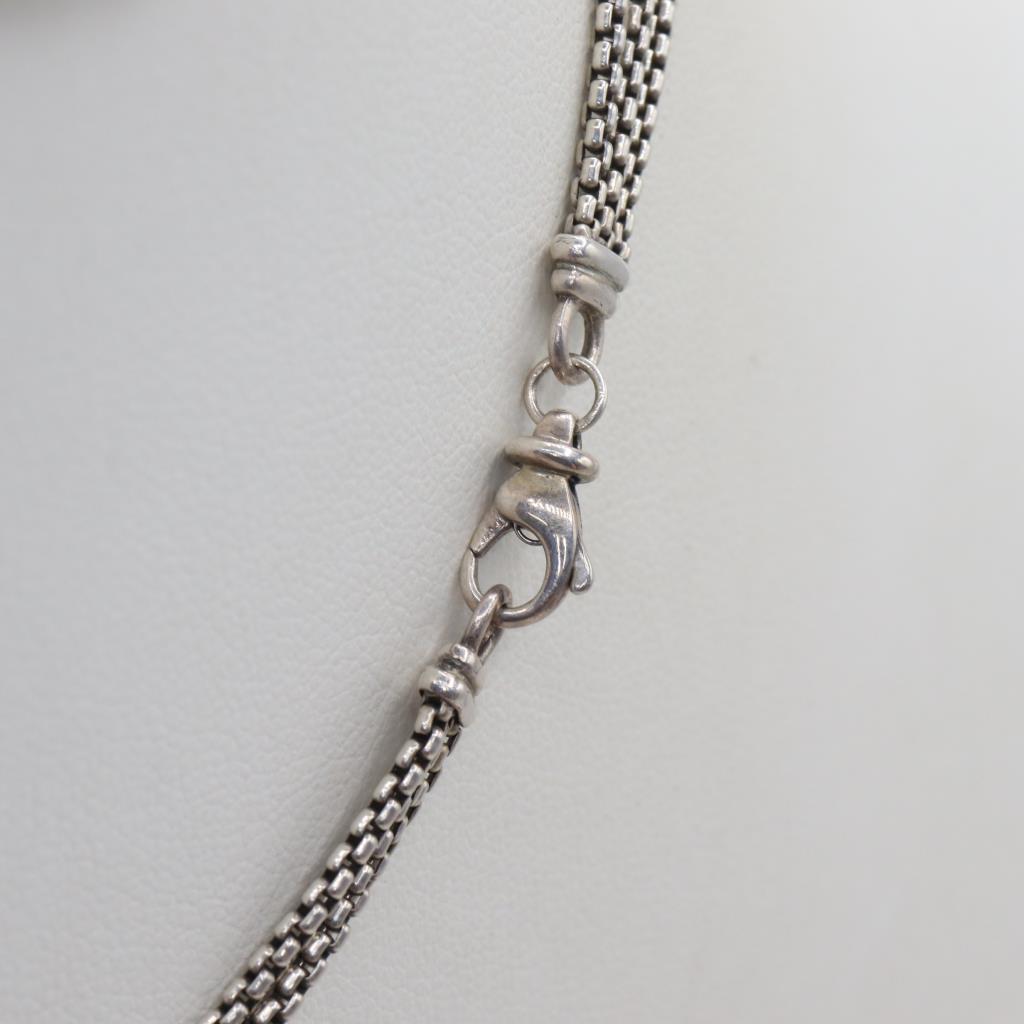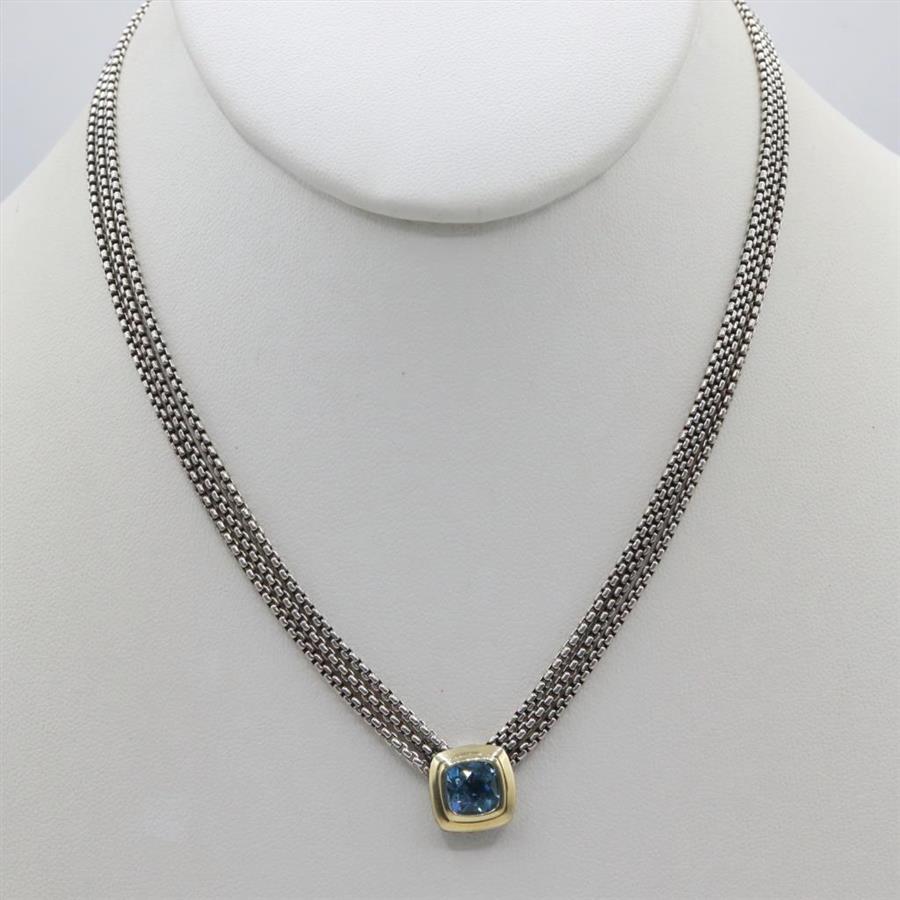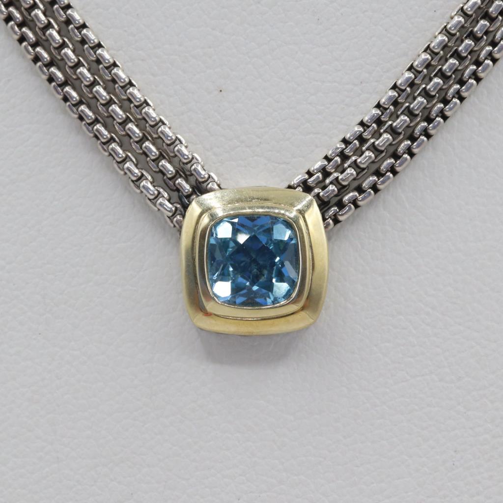 David Yurman Blue Topaz Albion 18kt Gold Accent Pendant Silver Triple Box Chain Necklace