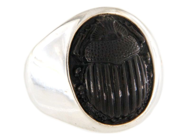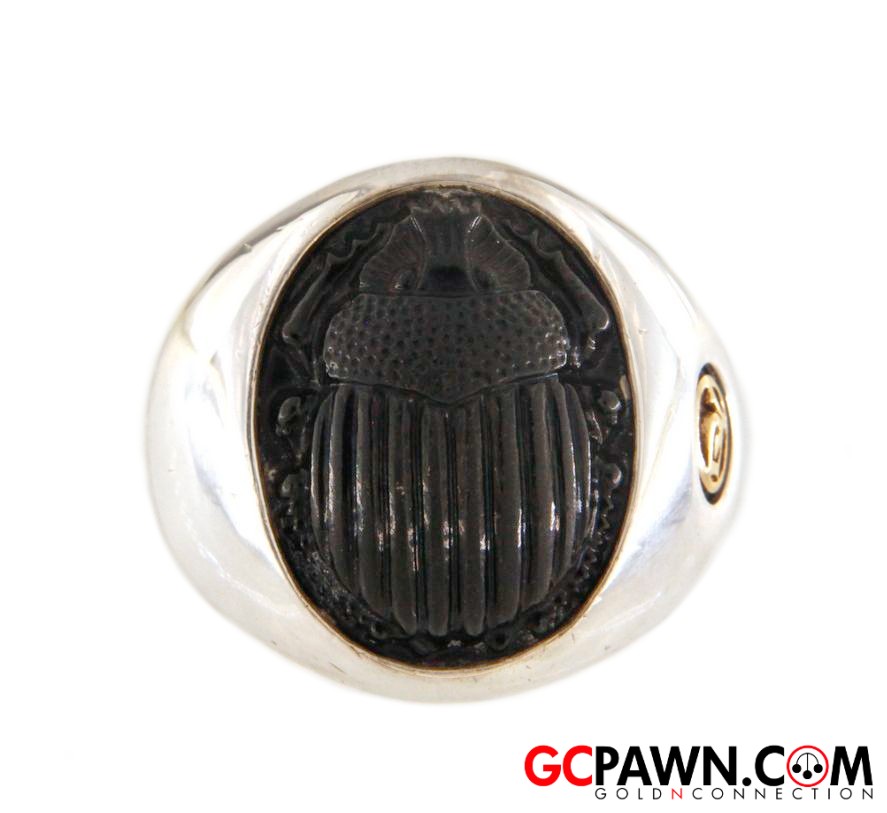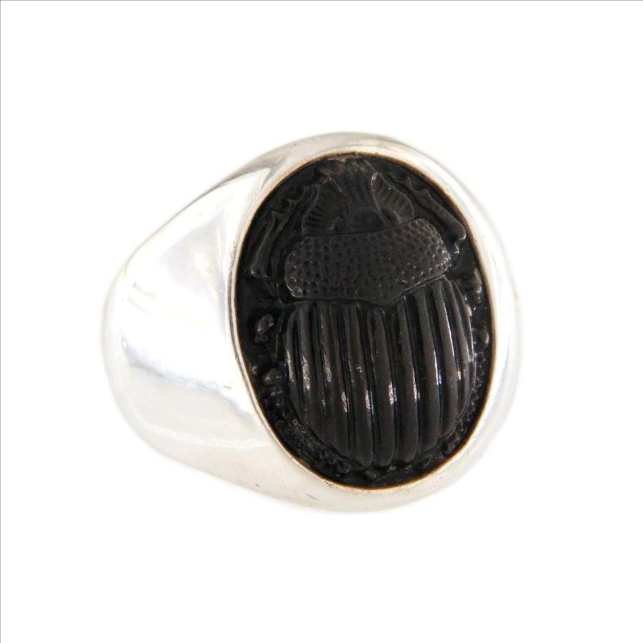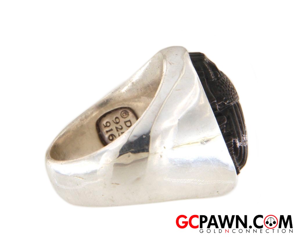 DAVID YURMAN "PETRVS SCARAB" ONYX SILVER AND GOLD SIGNET RING