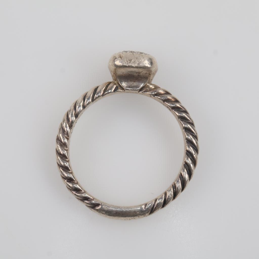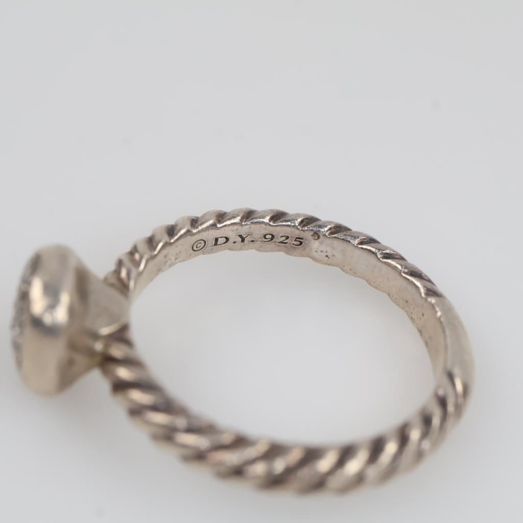 David Yurman Silver Cable Square Pave Diamond Stack Ring