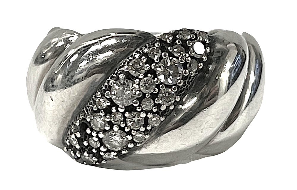DAVID YURMAN STERLING SILVER AND DIAMOND CLUSTER RING