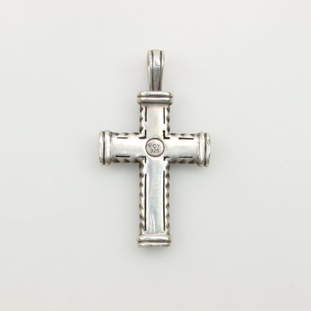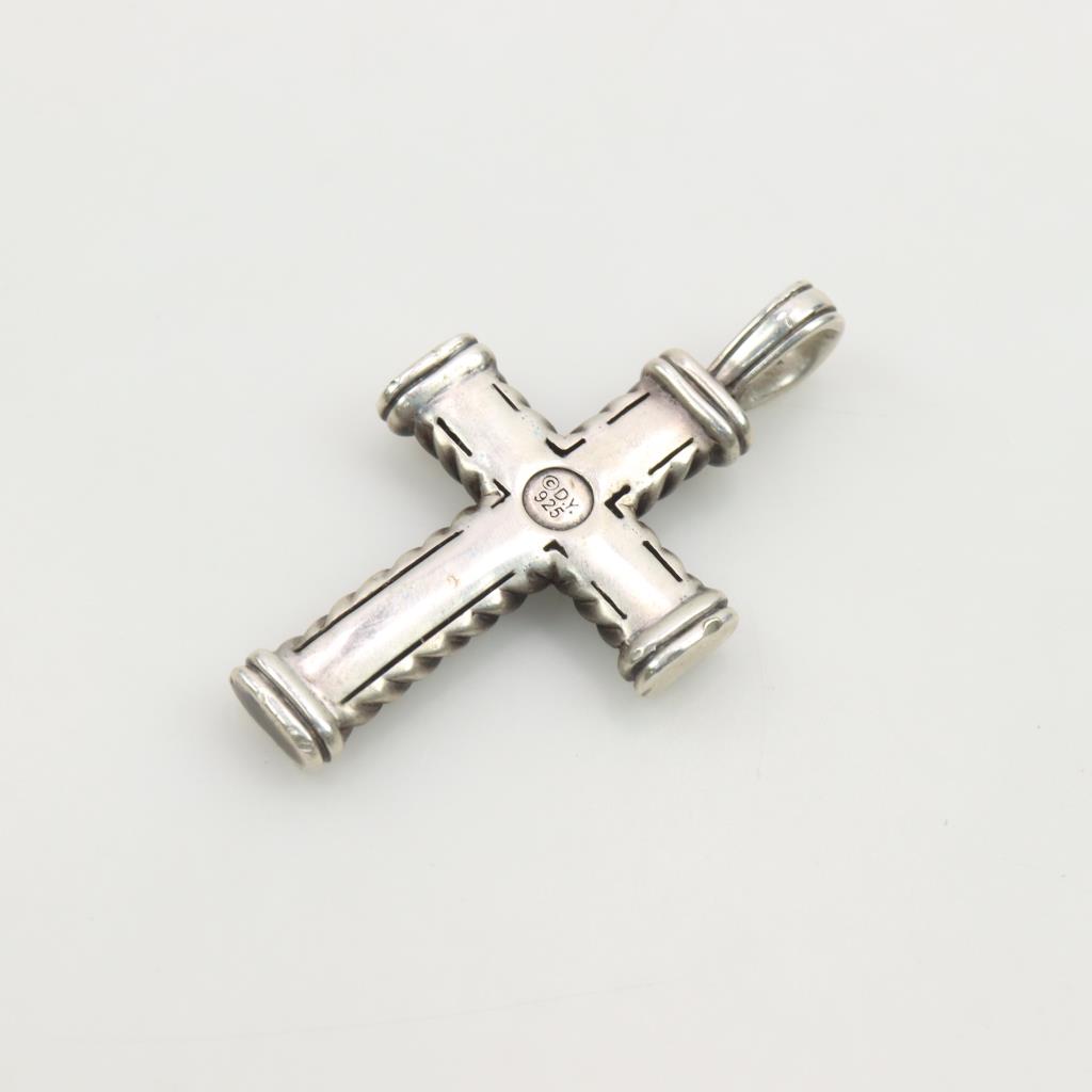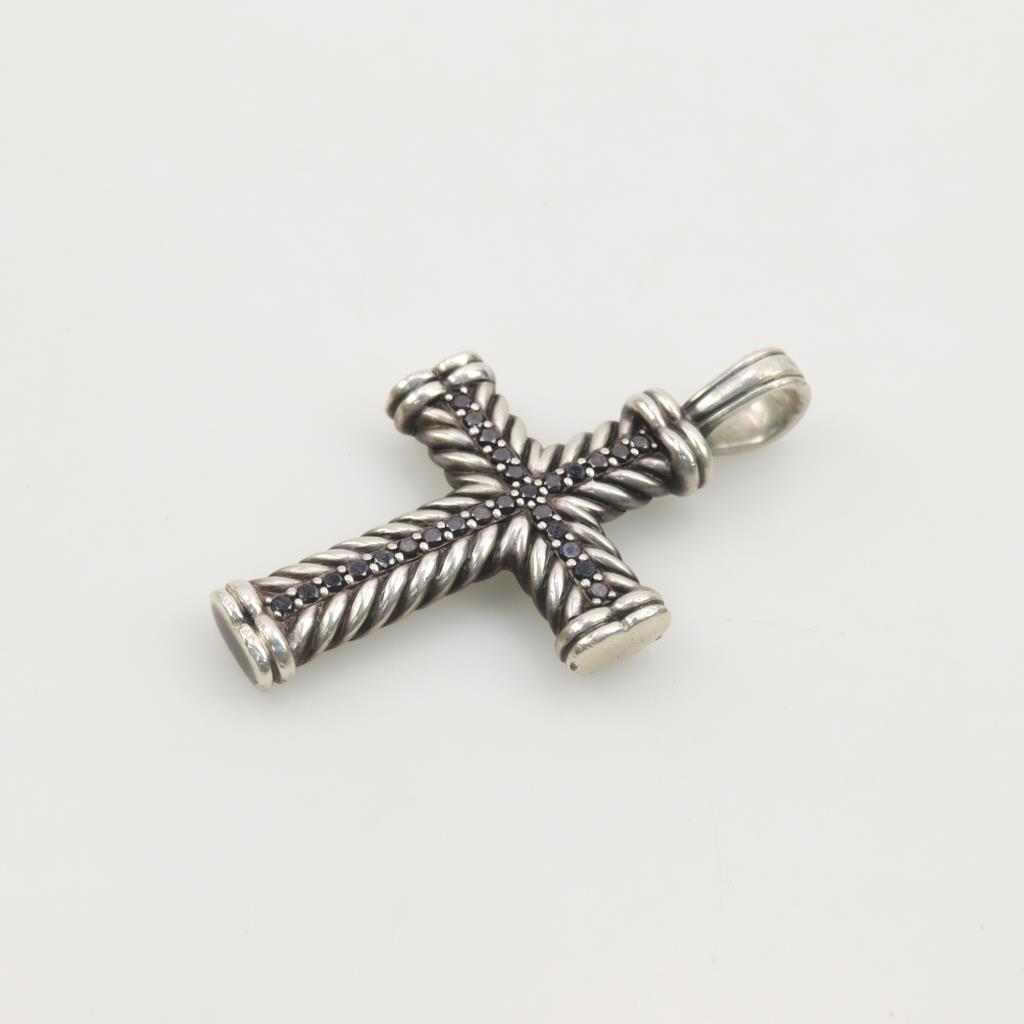 David Yurman Sterling Silver Chevron Cross Pendant With Pave Black Diamonds