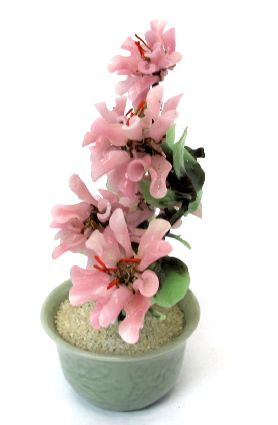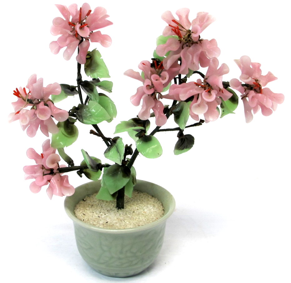 Decorative Bonsai Jade Like Tree with Glass Flowers and Leaves