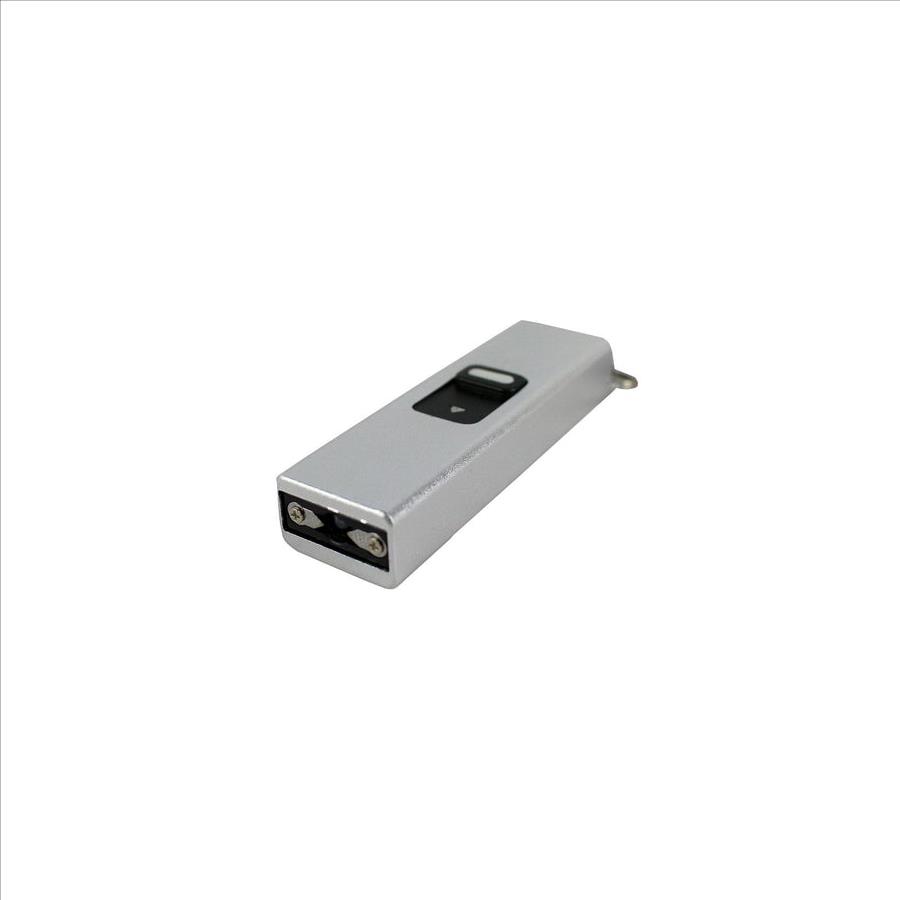 Distinctive U Flash design, Shell made from Aircraft Aluminum, electric shock activated by push out propeller, Large capacity Lithium polymer battery, rechargeable, Silver Color, LED Flash Light, Includes USB Charging Cord