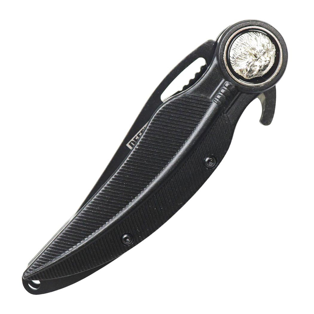 Defender-Xtreme 8" All Black Spring Assisted Folding Knife Leaf Design Handle With Belt Clip