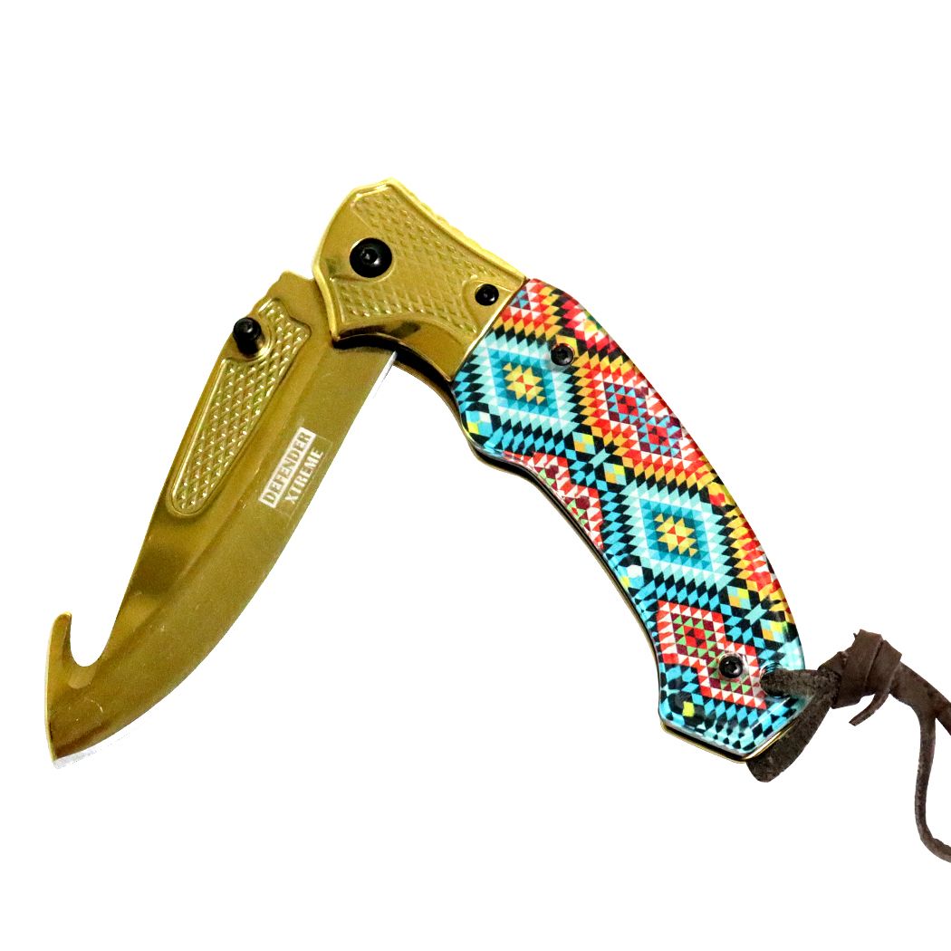 Defender-Xtreme 8" Spring Assisted Folding Knife Gold Blade with Designer Handle
