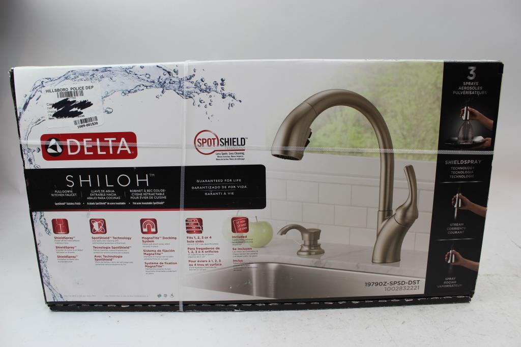 Get a great deal with this online auction presented by PropertyRoom.com on behalf of law enforcement or public agency client. - Brand: Delta Shiloh Single-Handle Pull-Out Sprayer Kitchen Faucet