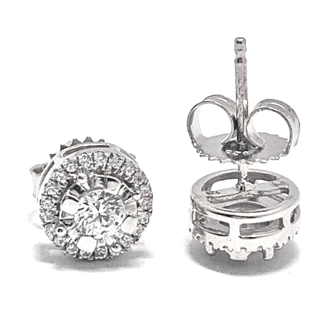 Designer .925 Sterling Silver & 18k WG 0.75ctw Diamonique Diamond Stud Earrings