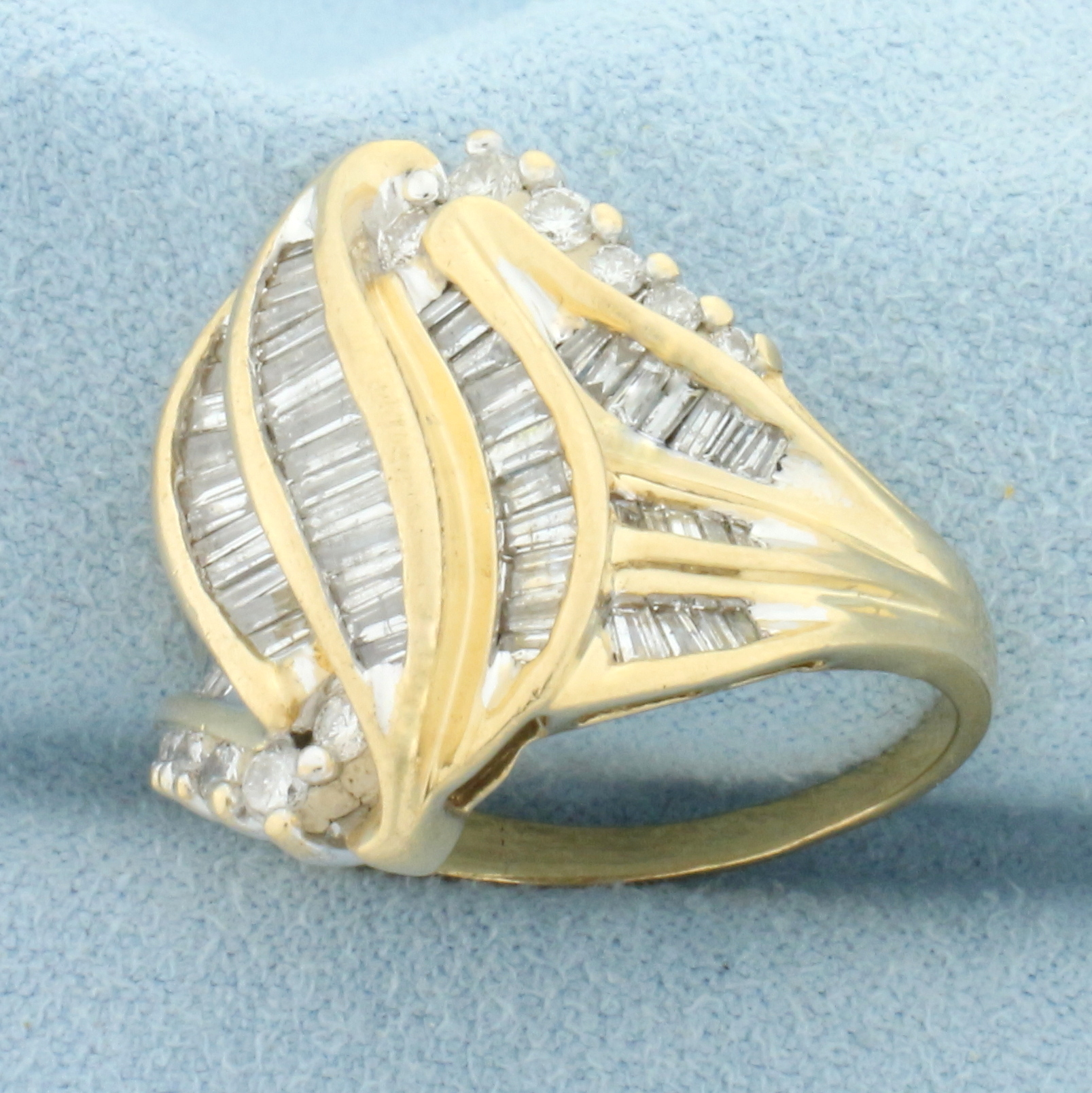 Designer Baguette and Round Diamond Statement Ring in 14k Yellow Gold