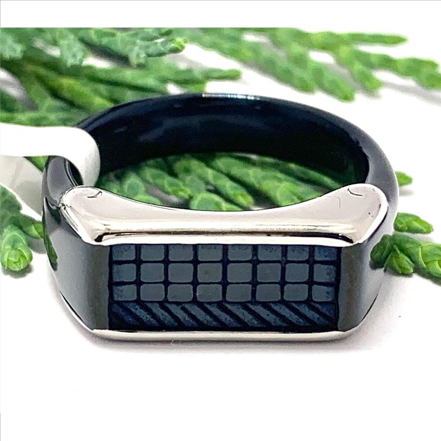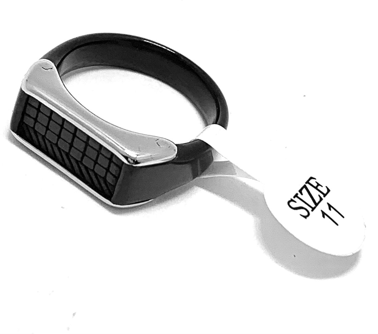 Designer Hematite & Stainless Steel Mens Ring Size 11