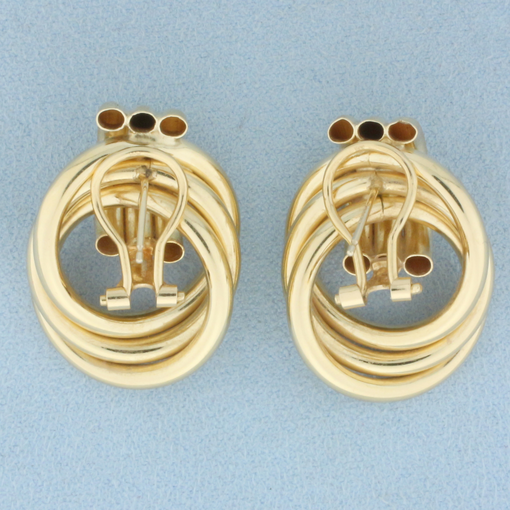 In 14k Yellow Gold. 1 inch long. 7/8 inch wide. Omega backs. 10.5g.
