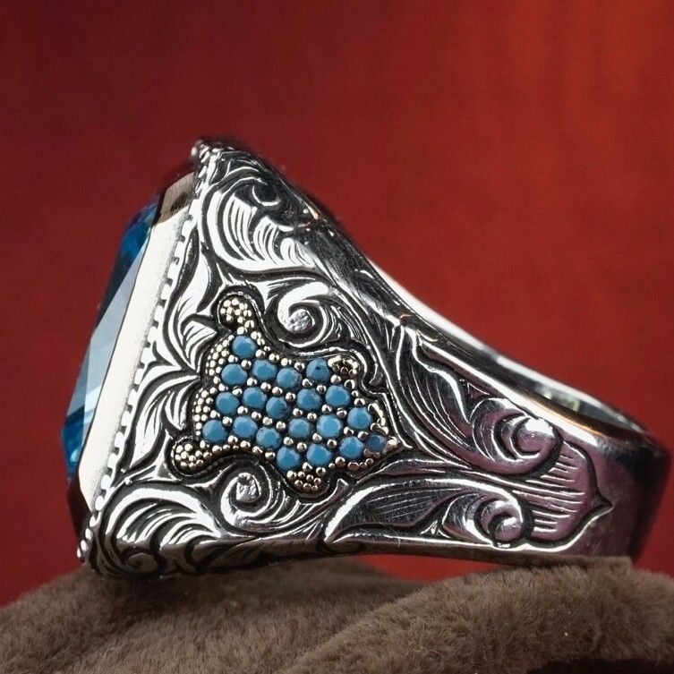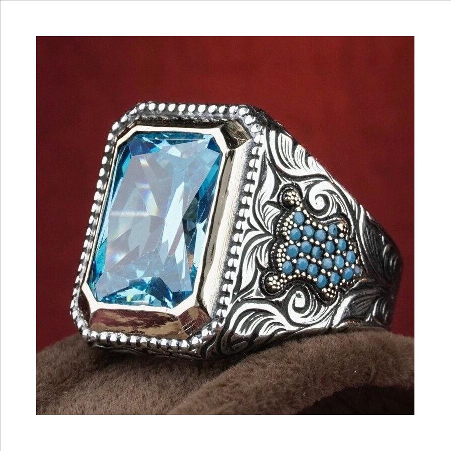 Designer Inspired 18k White Gold Overlay 6.00ctw Blue Topaz Ring Size 7