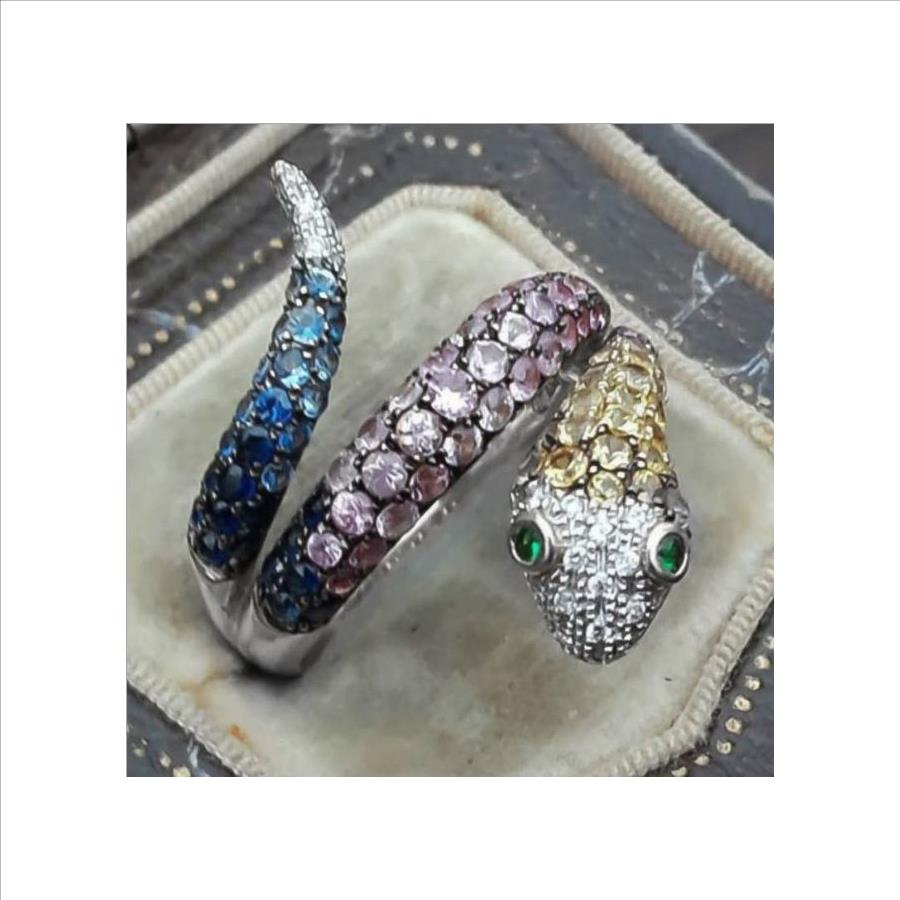 Designer Inspired 2.00ctw Multicolor Stones Snake Ring sz7