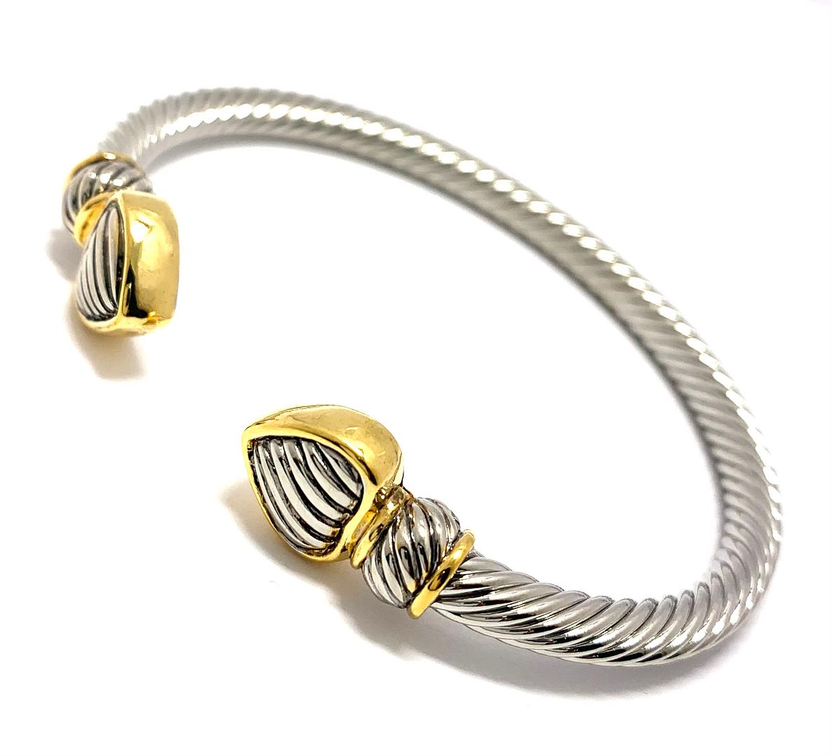 Designer inspired Two Tone 14k Gold Over Twisted Cable Cuff Bangle Bracelet