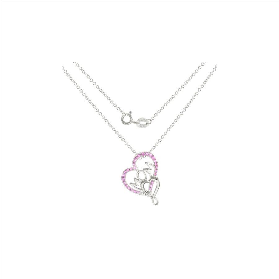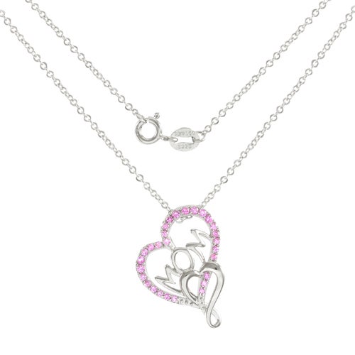 Designer LORENZO .925 Sterling Silver Created Pink Sapphire Heart Shape "Mom" Necklace