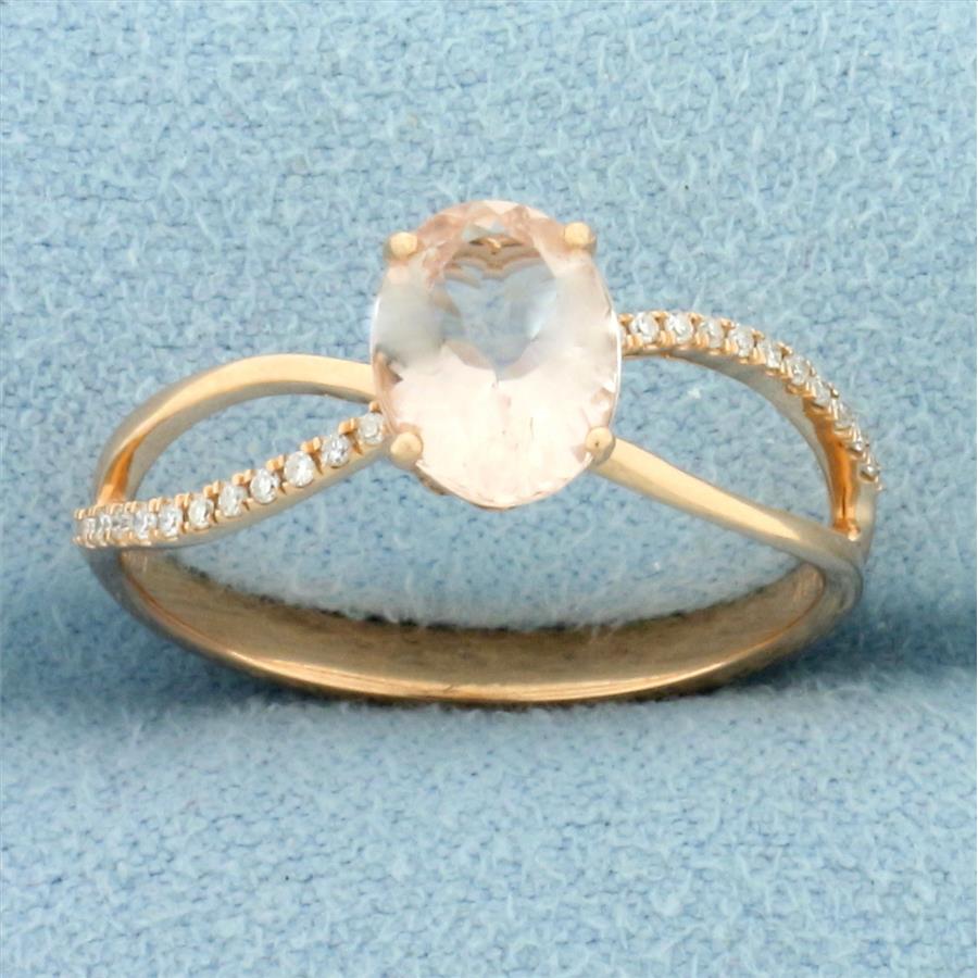 Designer Morganite and Diamond Ring in 14k Rose Gold