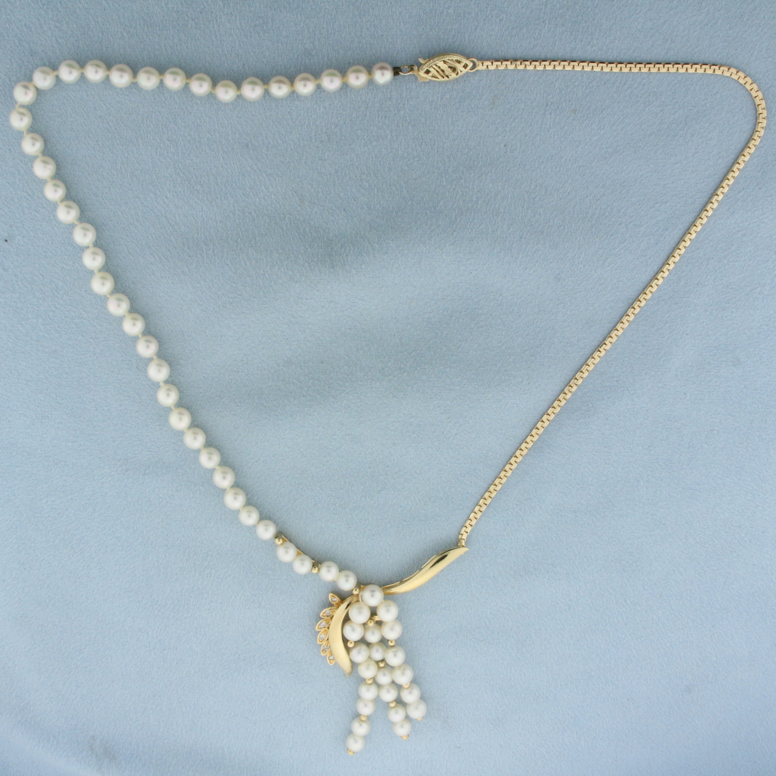Designer Pearl and Diamond Necklace in 14k Yellow Gold