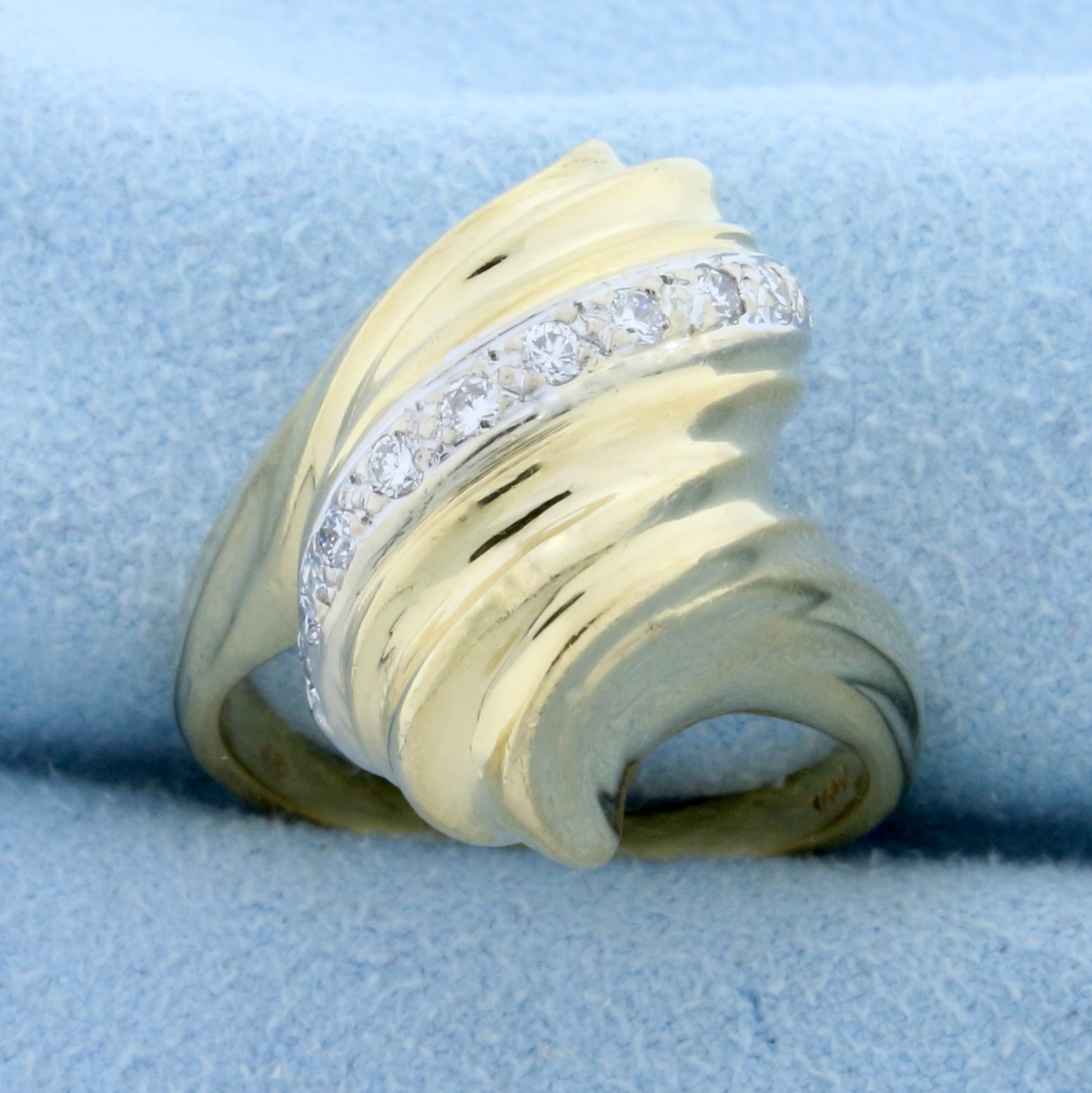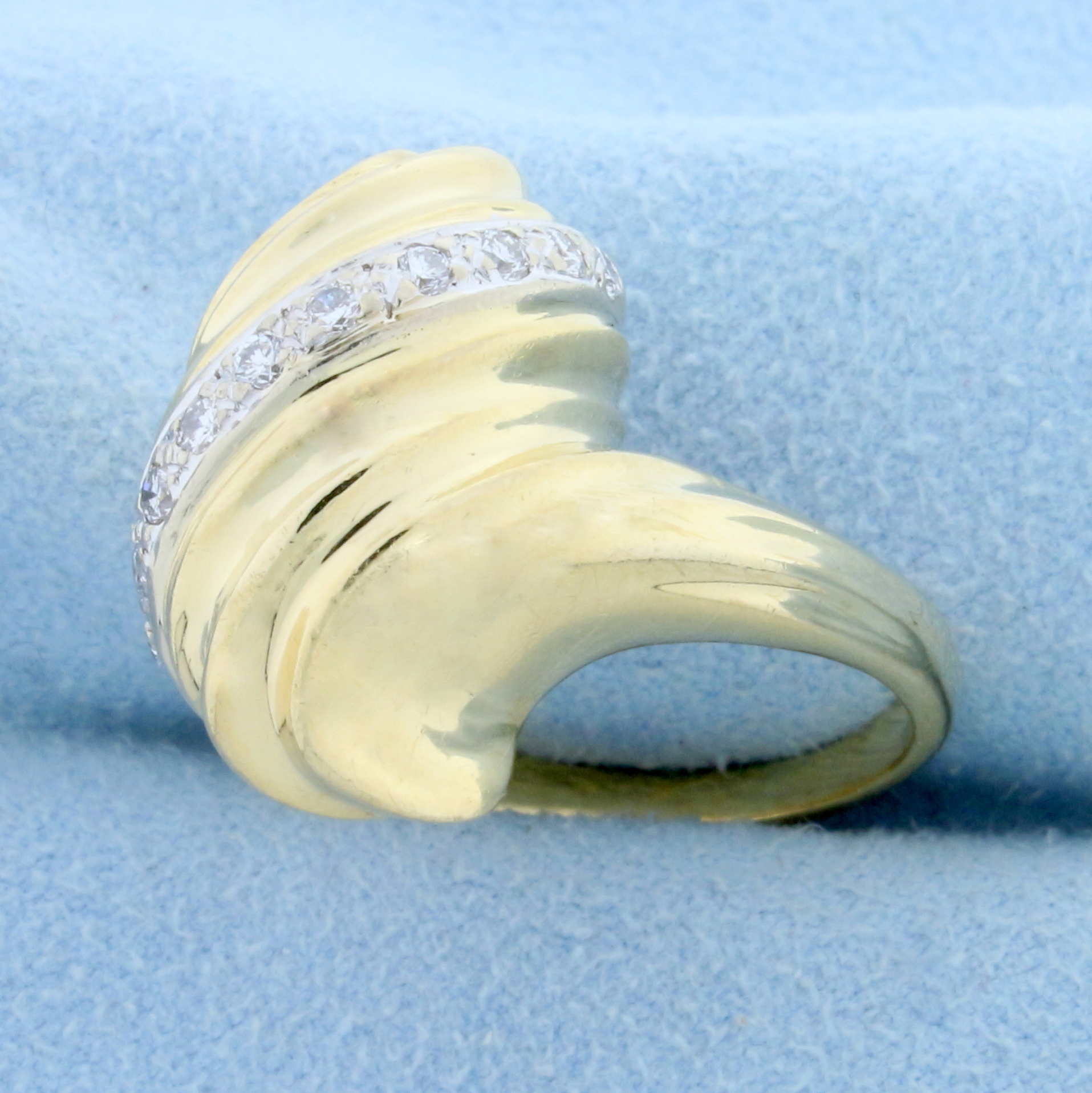 Designer Scroll Design Diamond Dome Ring in 14K Yellow Gold