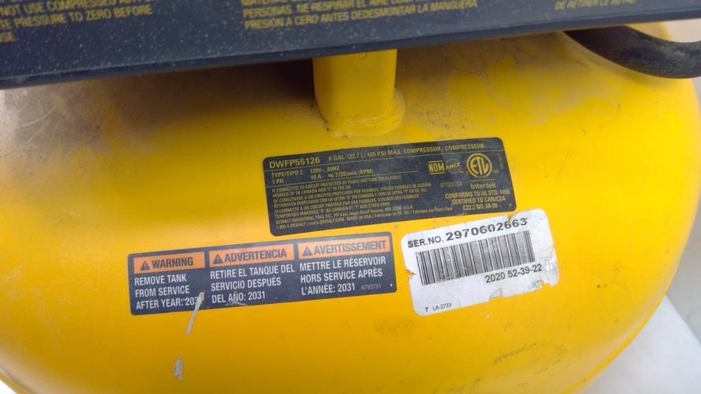 Dewalt 6 Gallon 165 PSI Max Compressor