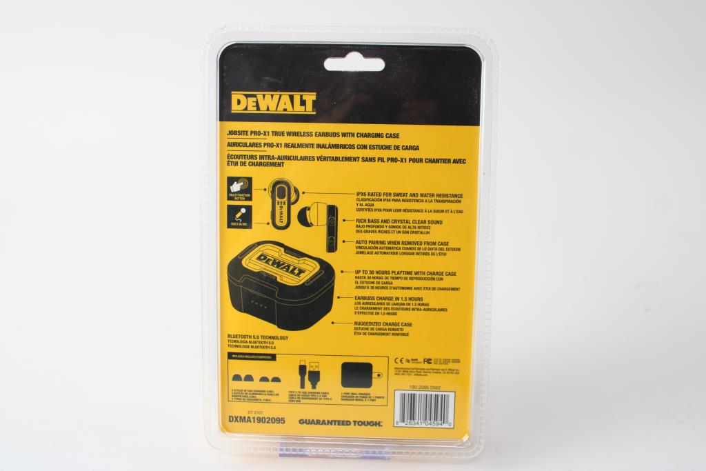 Dewalt Jobsite Pro-X1 True Wireless Earbuds With Charging Case, Yellow/Black