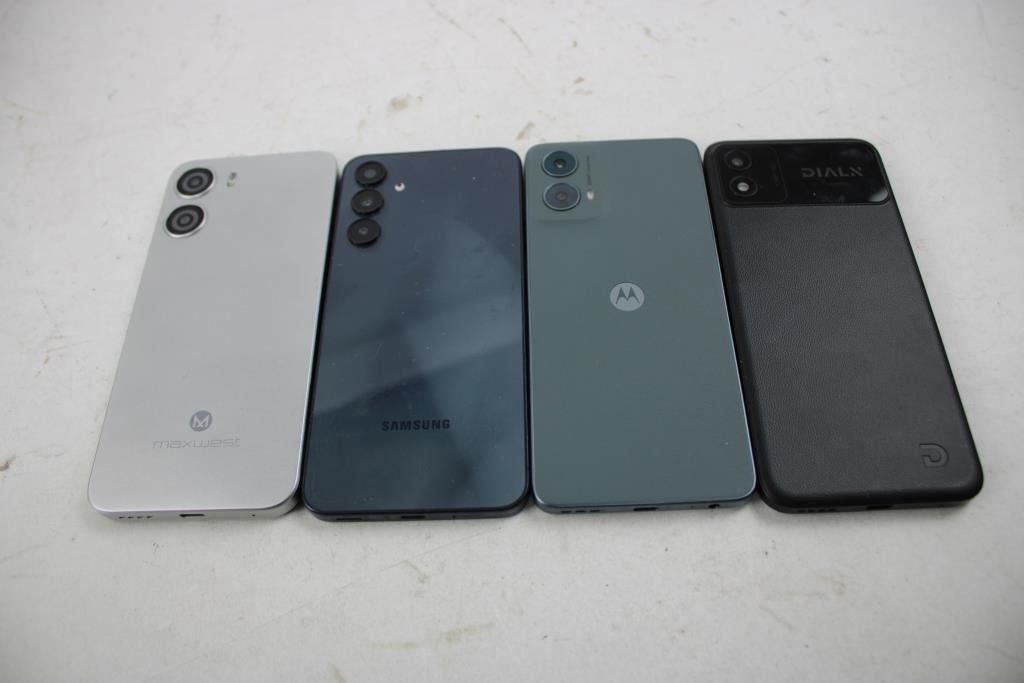 Dialn, Motorola, Samsung, Maxwest Cell Phone Lot, 4 Pieces, Sold For Parts