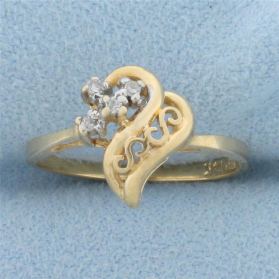 Diamond Abstract Heart Design Ring in 14k Yellow Gold