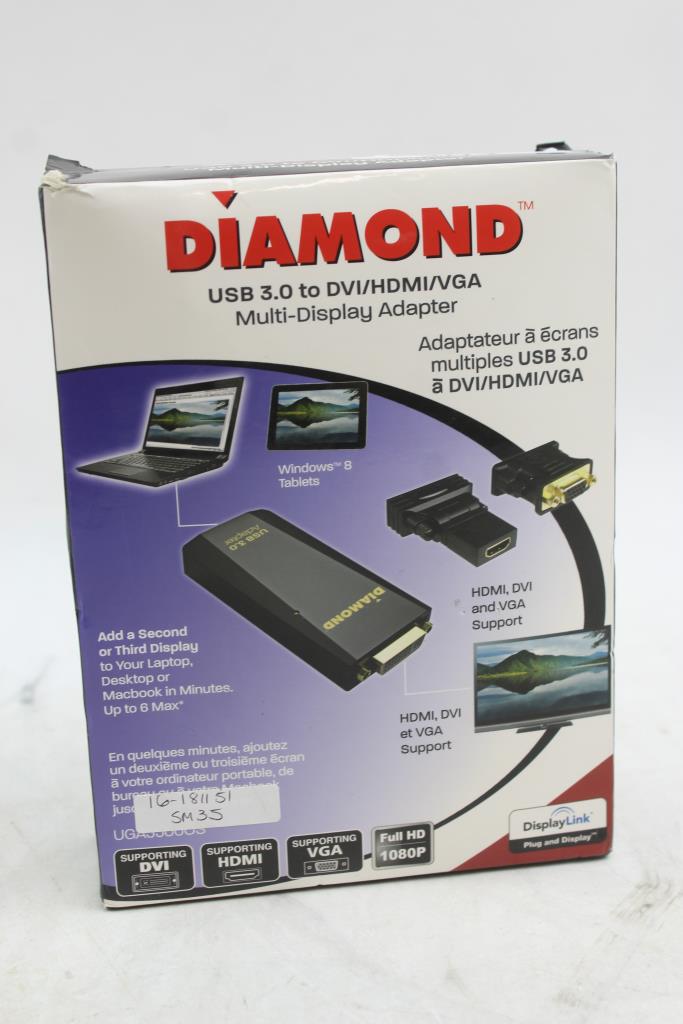 Get a great deal with this online auction for an Adapter presented by Property Room on behalf of a law enforcement or public agency client. - Brand/Model: Diamond BizView DisplayLink DL-3500 UGA3500OS External Adapter - 757448024104
