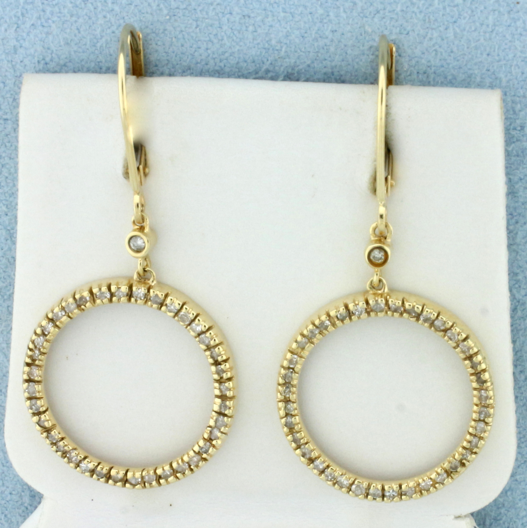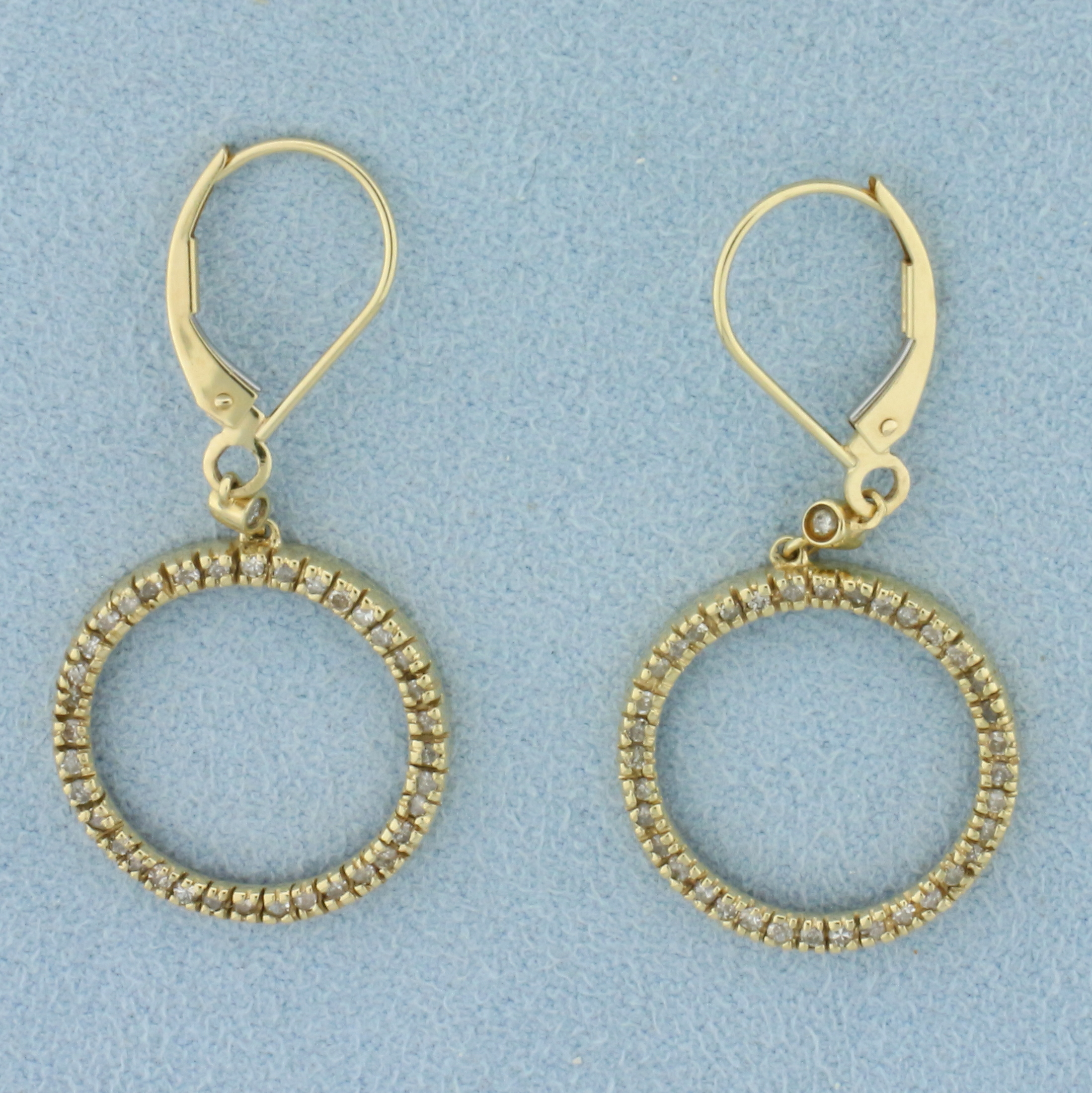 Diamond Circle Dangle Earrings In 14k Yellow Gold