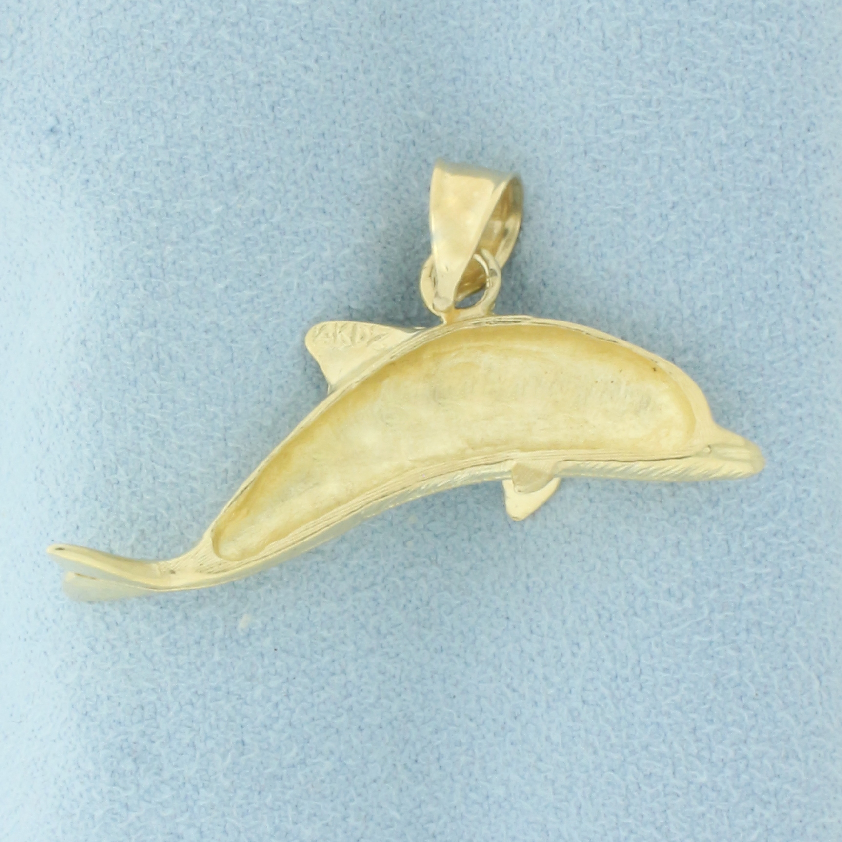 Diamond Cut Dolphin Pendant in 14k Yellow Gold